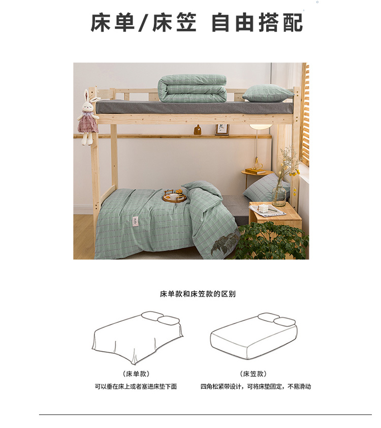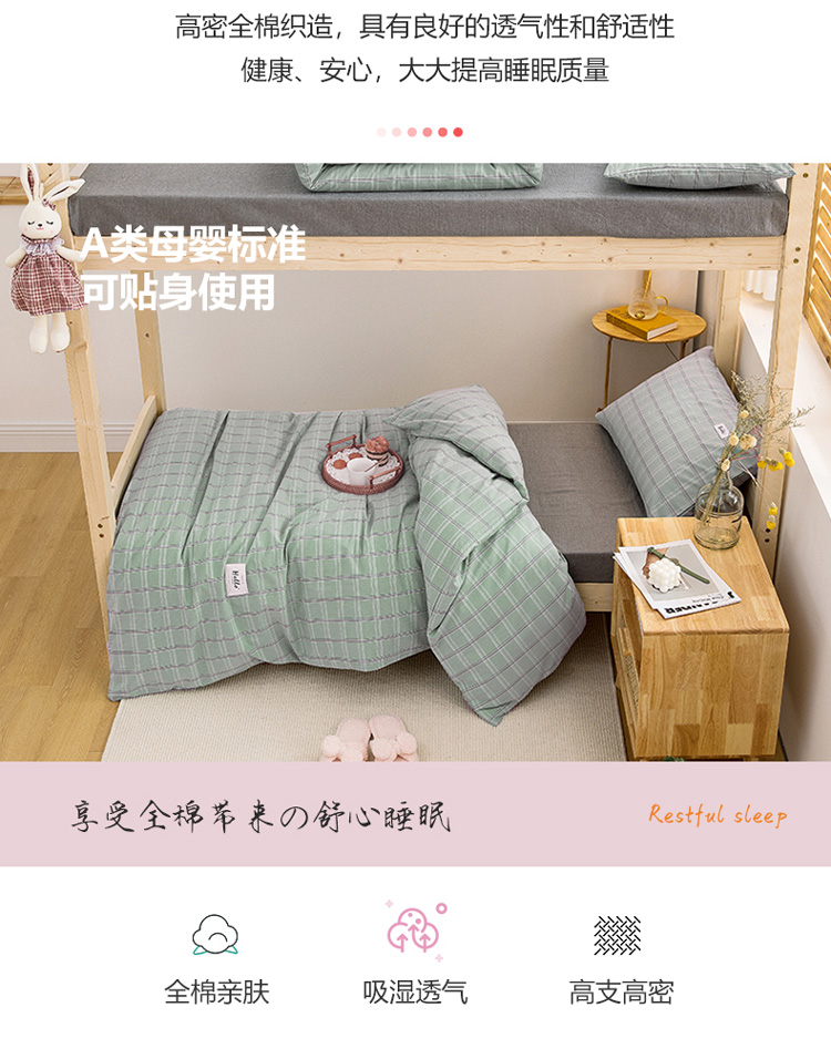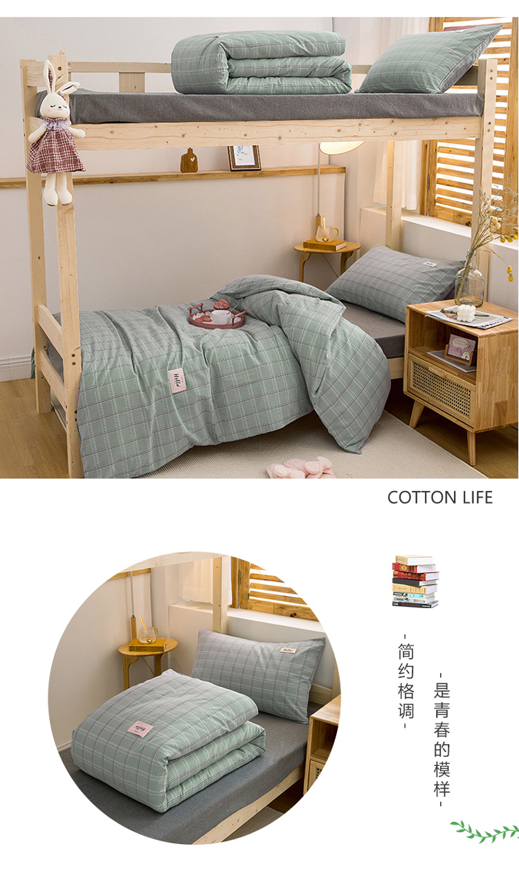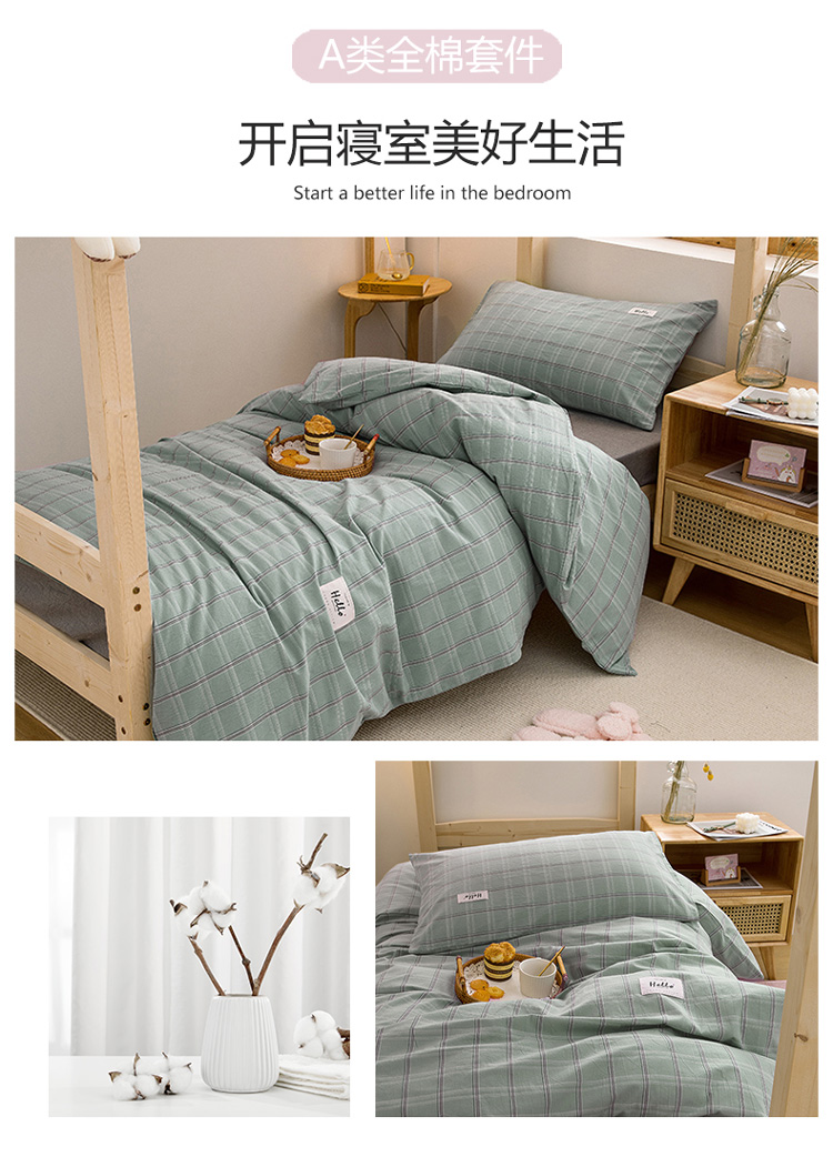 当前位置: 91家纺网 > 商品网购 > 床品套件 > 三件套 > 柠萌 新款A类全棉色织水洗棉学生上下铺全棉三件套 海蓝格
