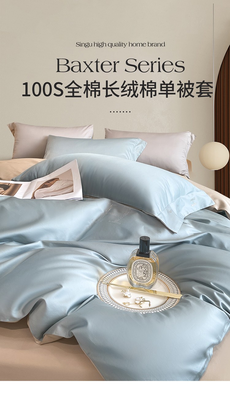 798家纺 2022新款长绒棉贡缎单被套 月影蓝