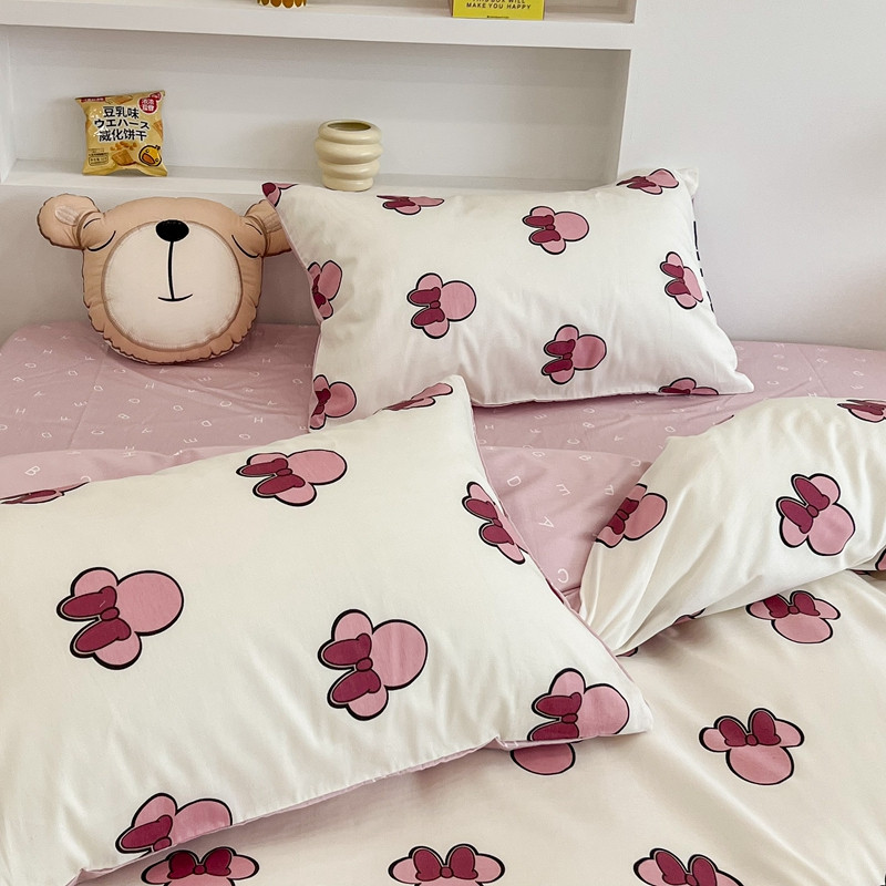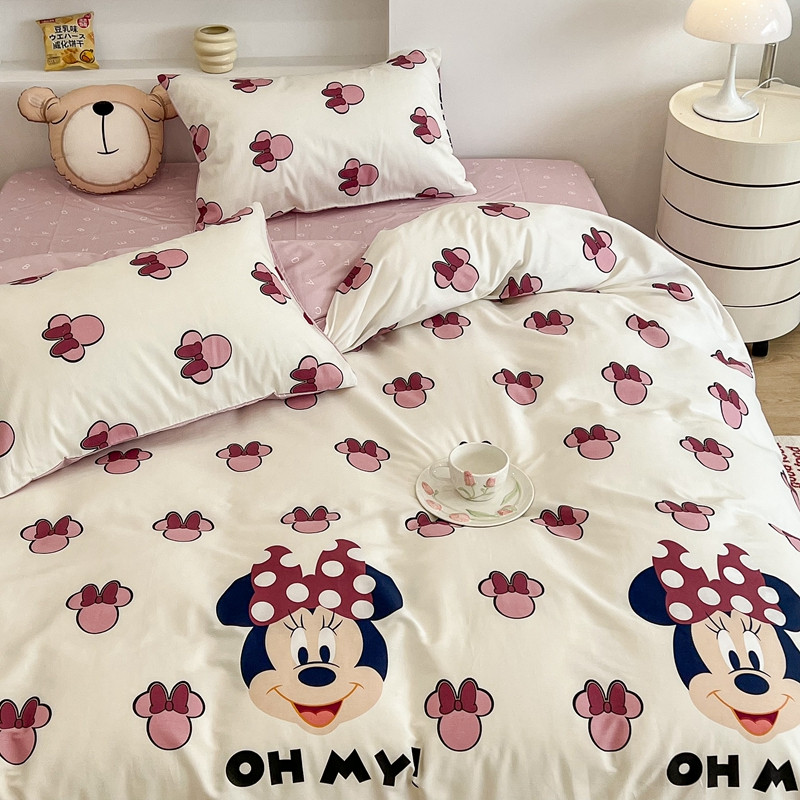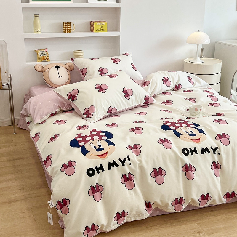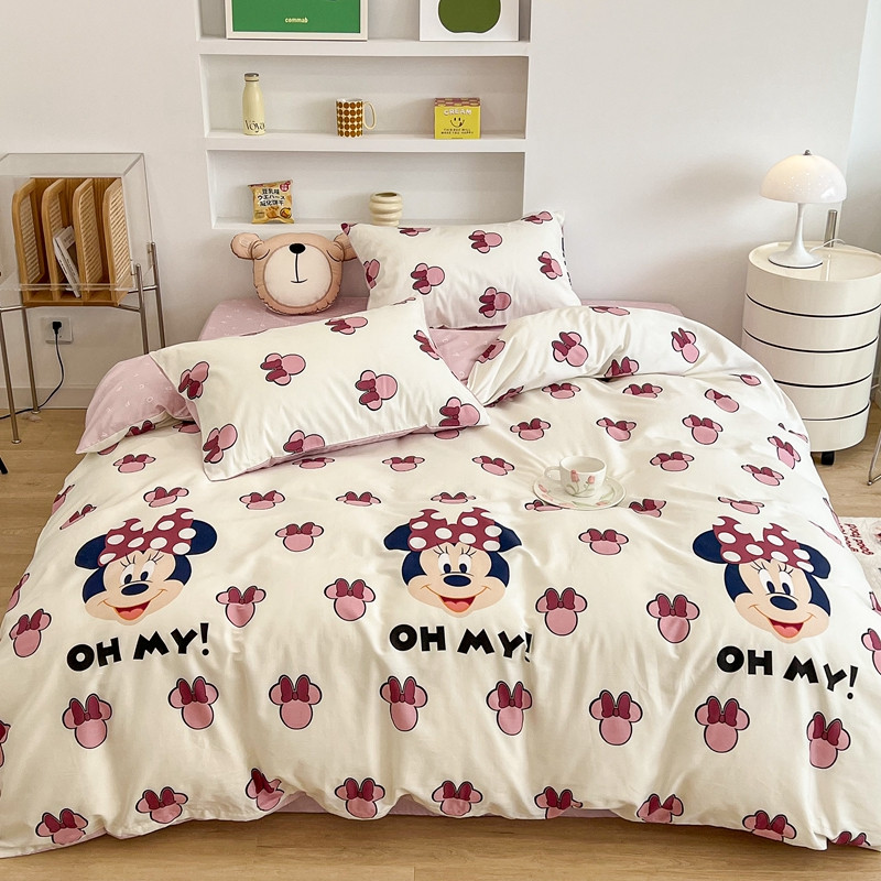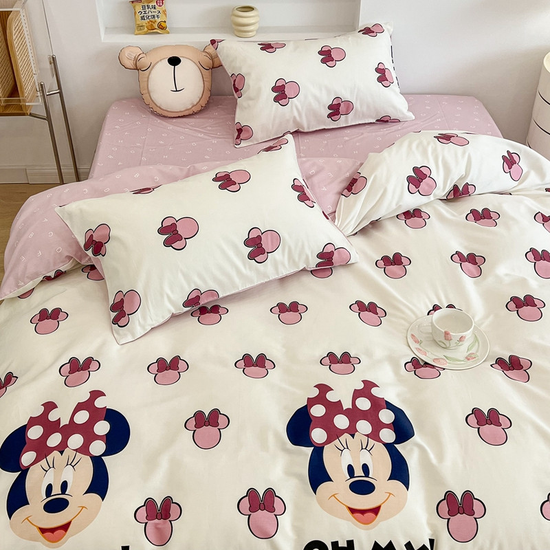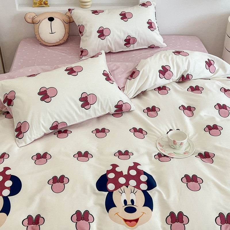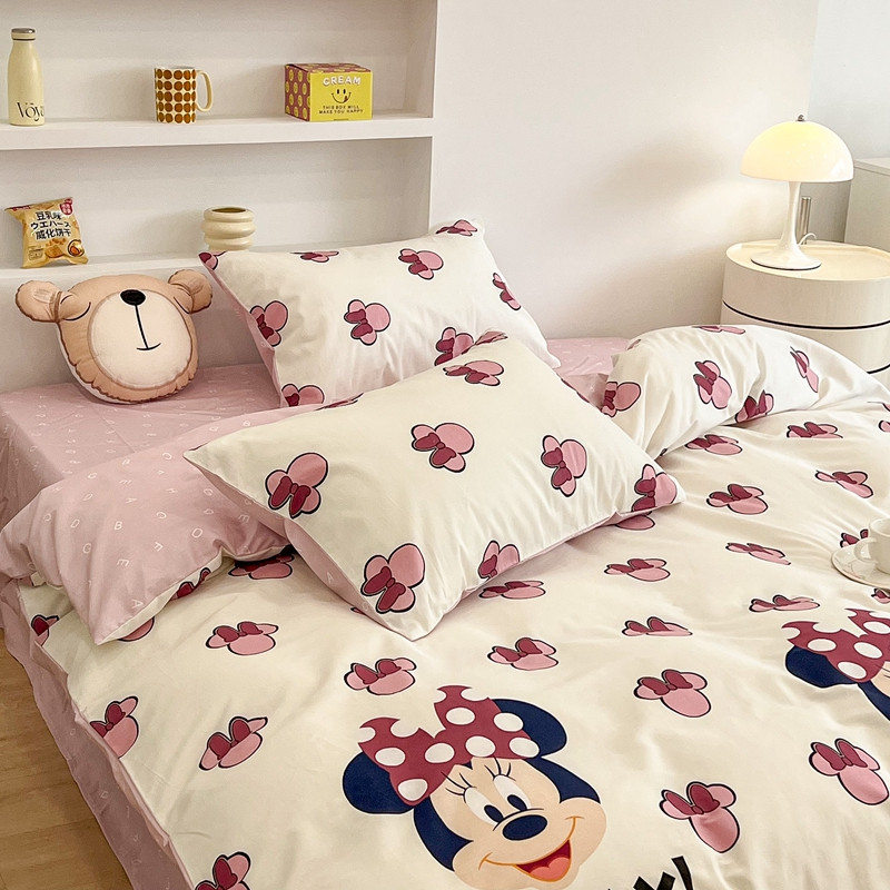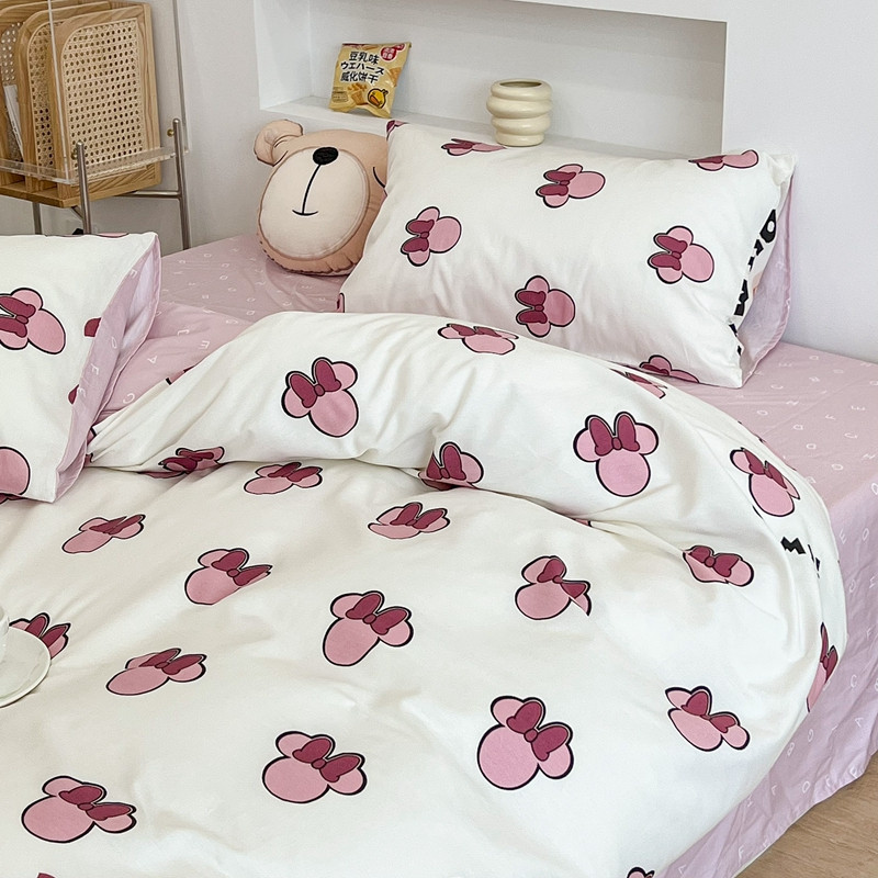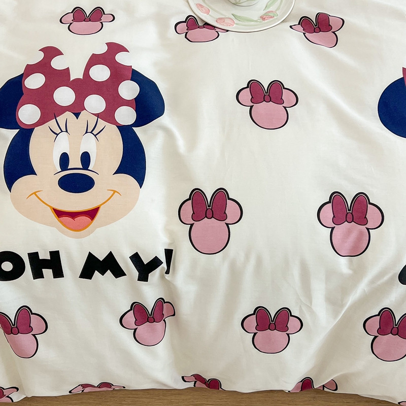 昔可家纺2022新款迪士尼全棉四件套 粉色蝴蝶结米妮