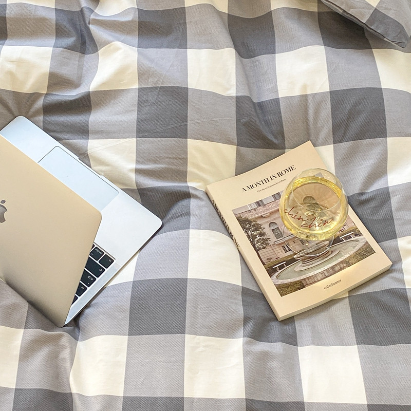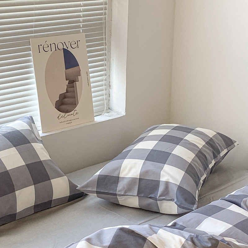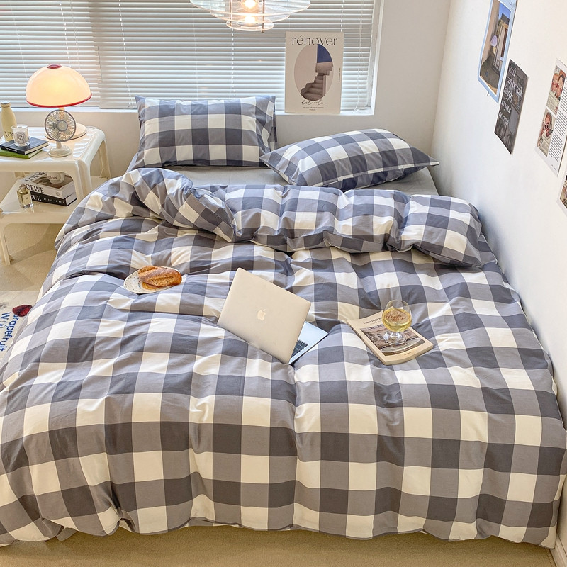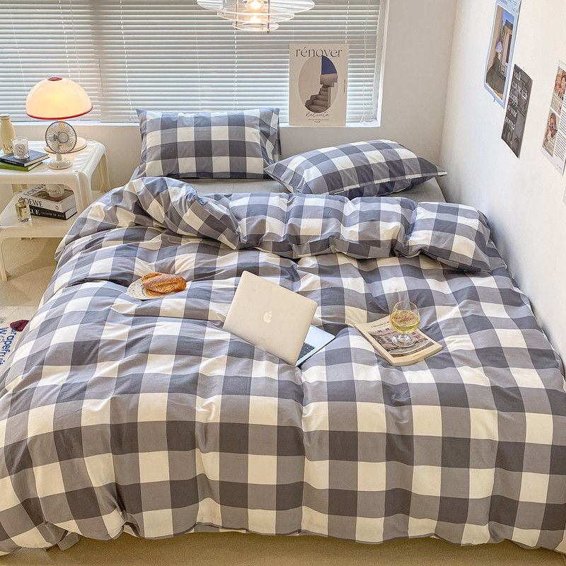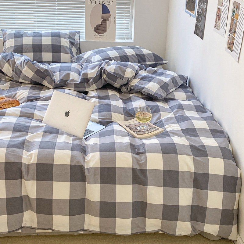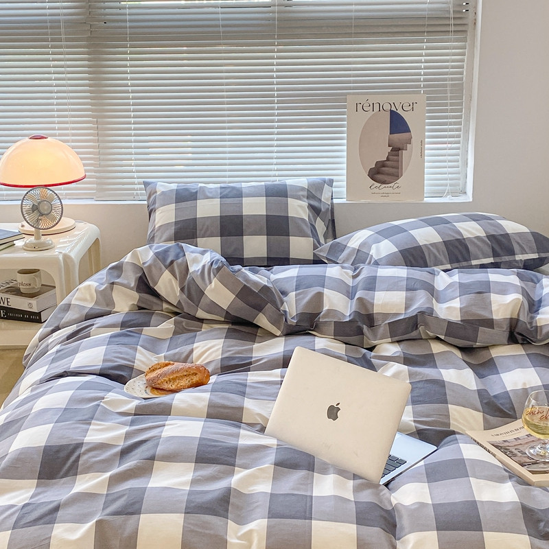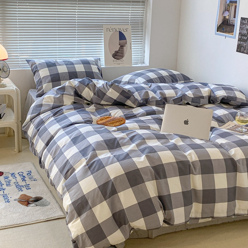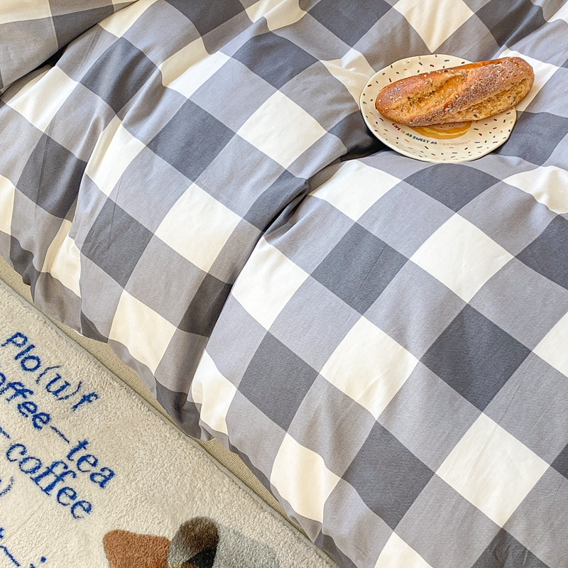 昔可家纺2022新款学生季格子全棉四件套 加州灰格