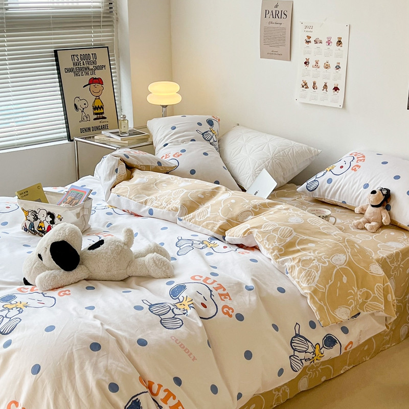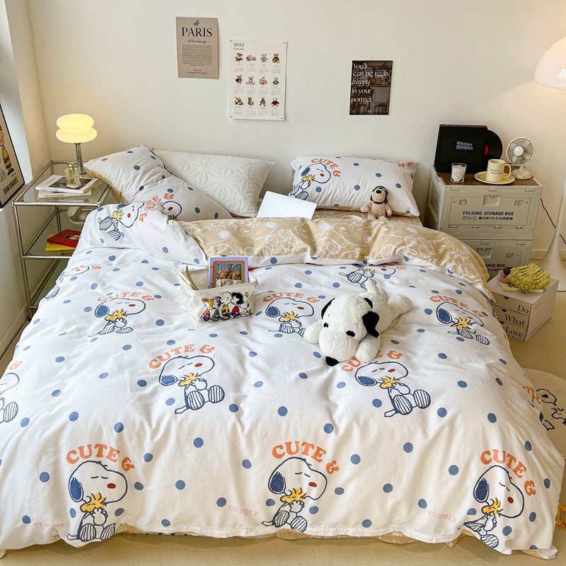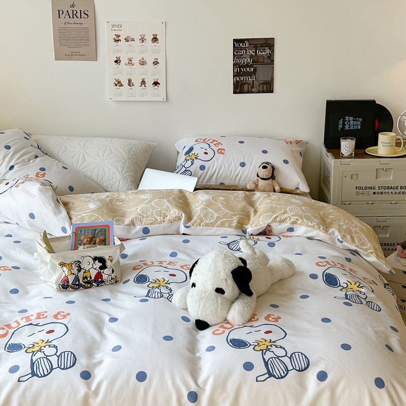 昔可家纺2022新款正版授权史努比全棉四件套 蓝波点史努比