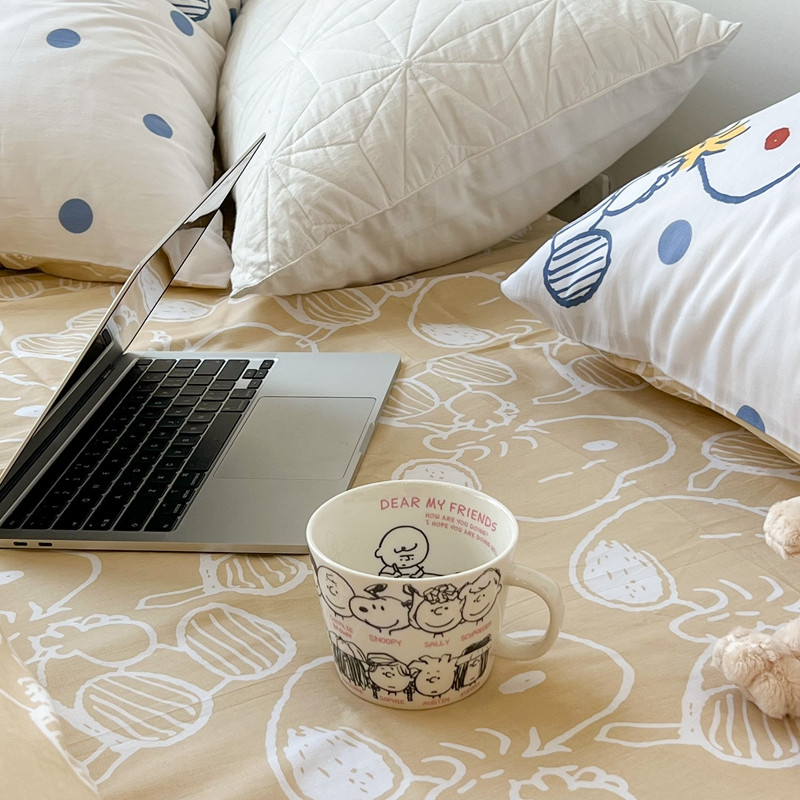 商品名称:昔可家纺2022新款正版授权史努比全棉四件套 蓝波点史努比