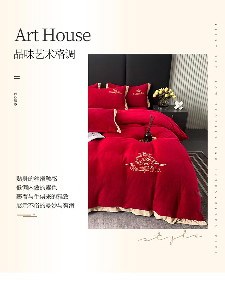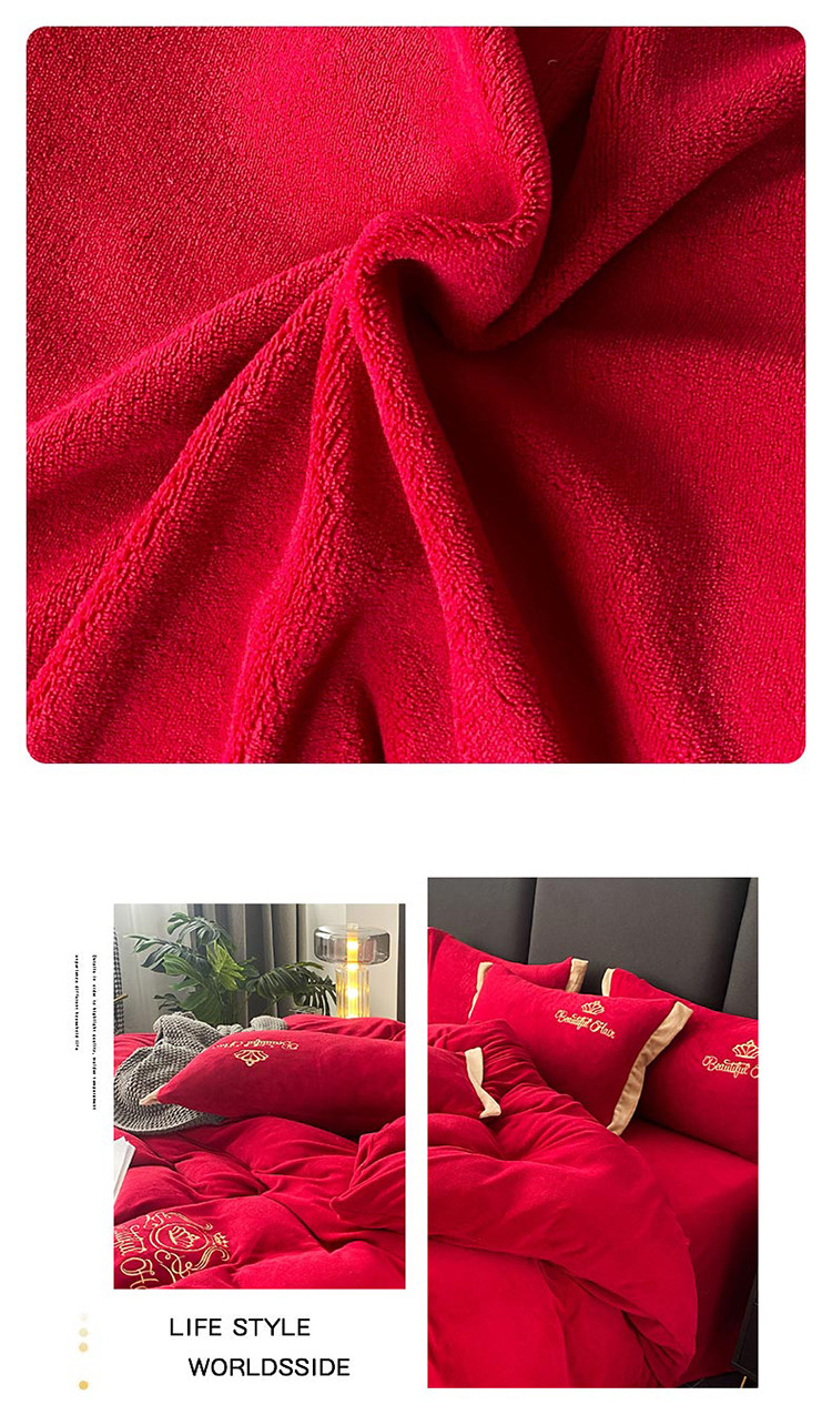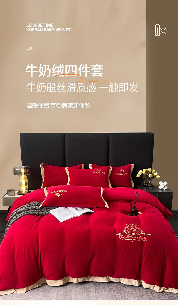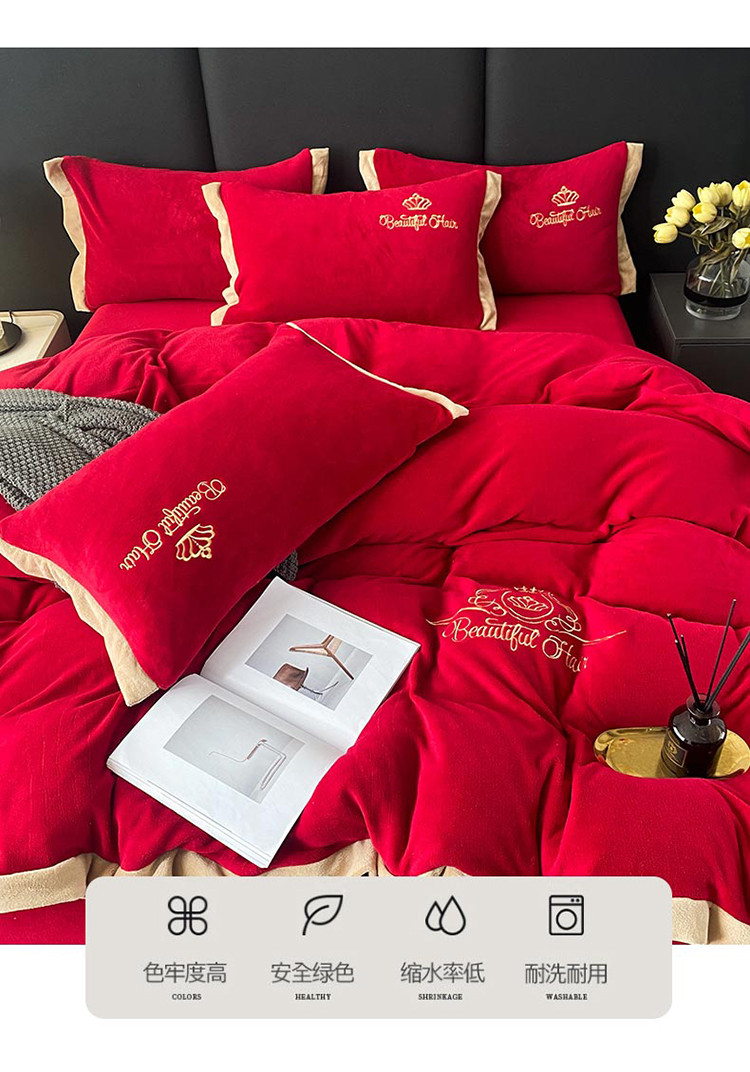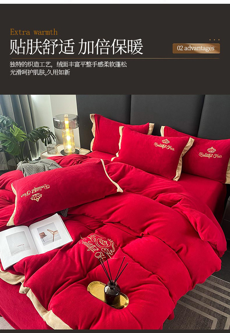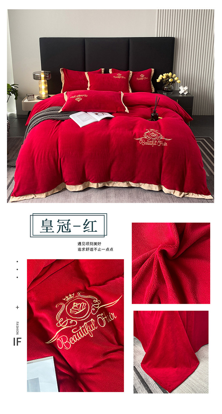 铠畅 2022年新款冬季爆款牛奶绒绒四件套 皇冠-红
