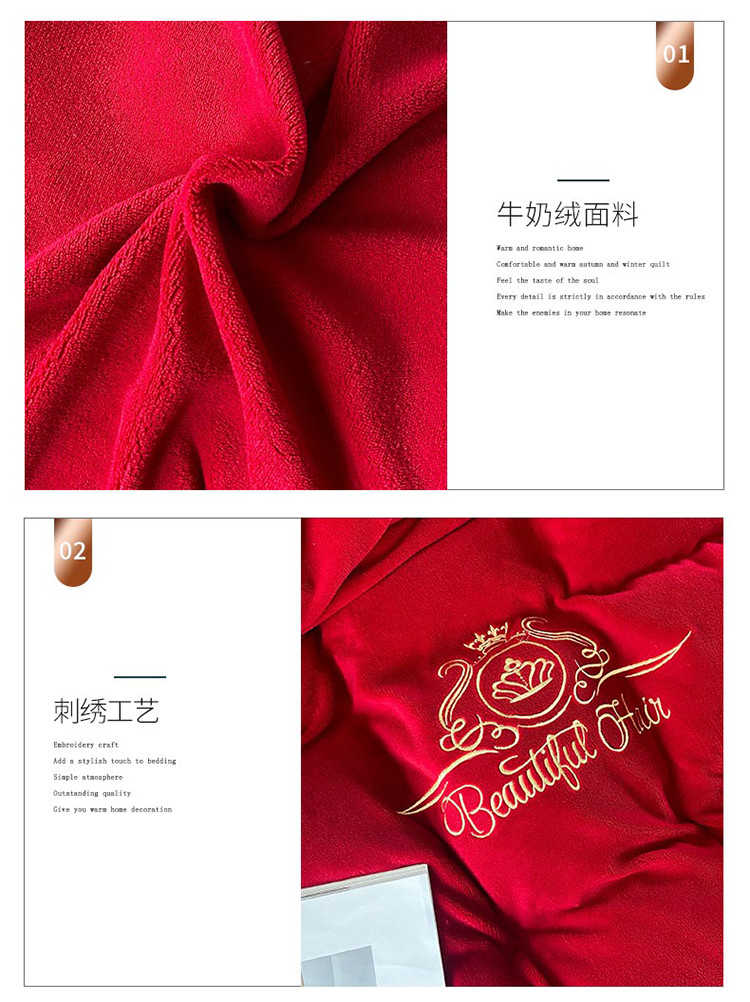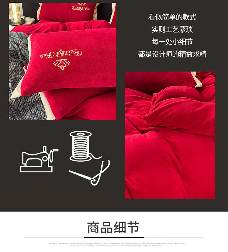 商品名称:铠畅 2022年新款冬季爆款牛奶绒绒四件套 皇冠-红