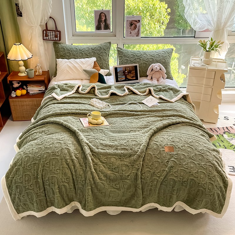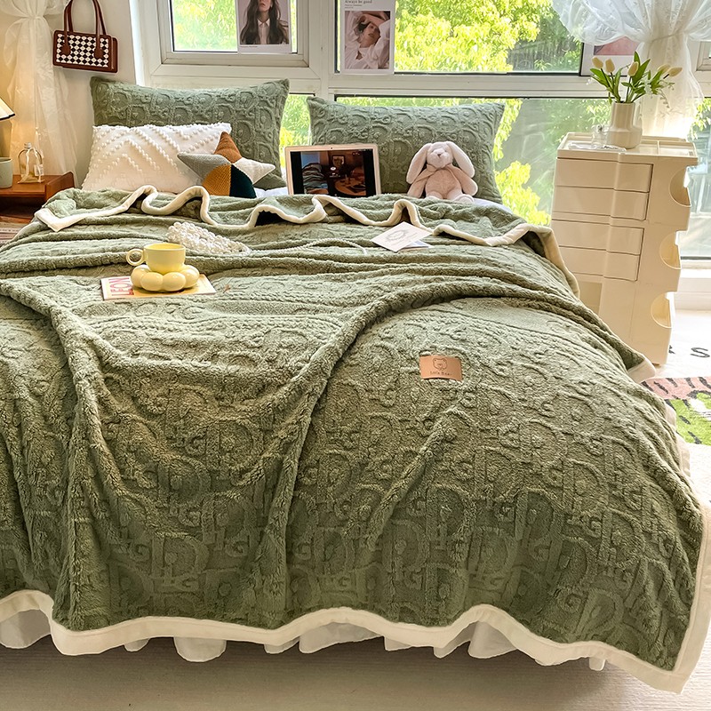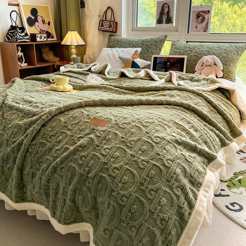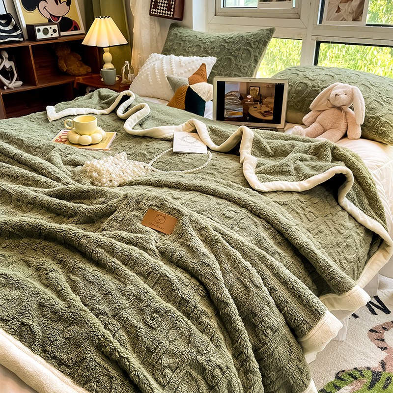 HL原创 2022新款色织提花啵啵绒毯 色织提花毯-绿
