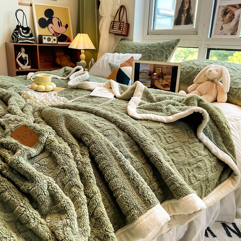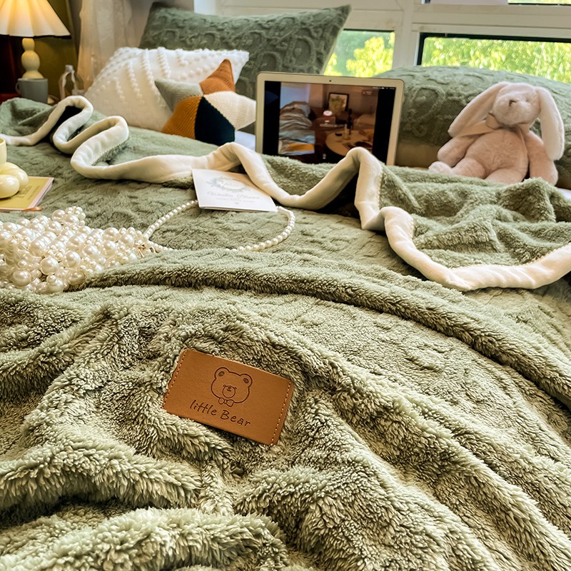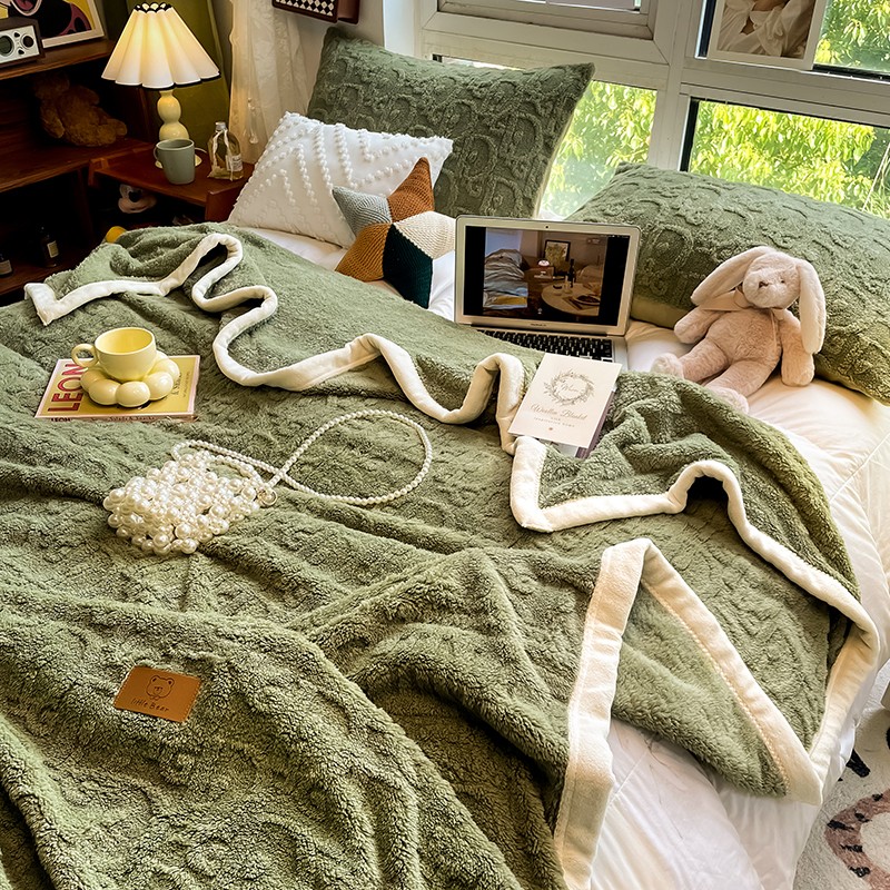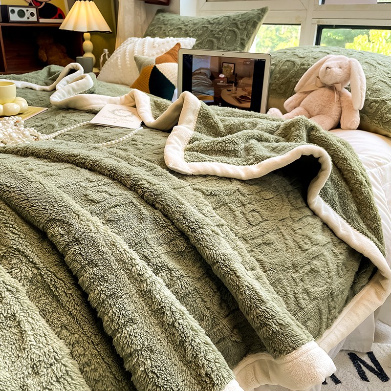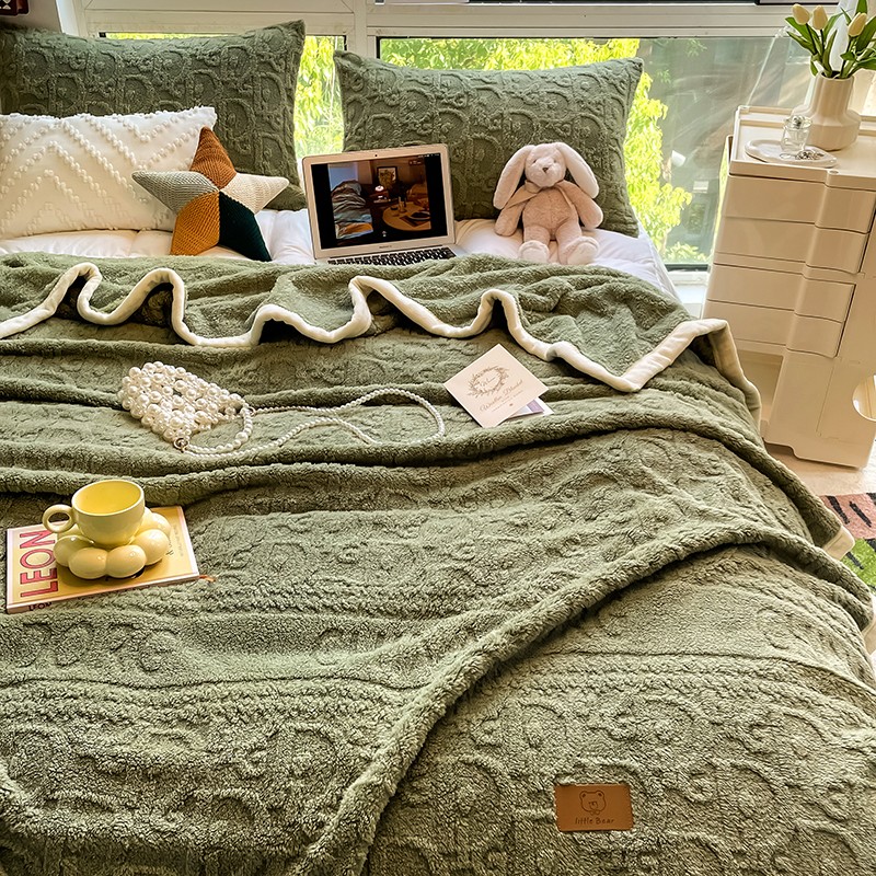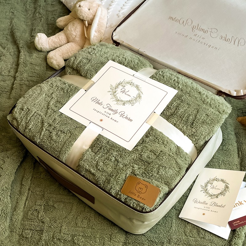 商品名称:HL原创 2022新款色织提花啵啵绒毯 色织提花毯-绿