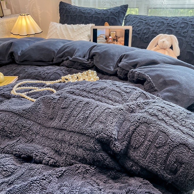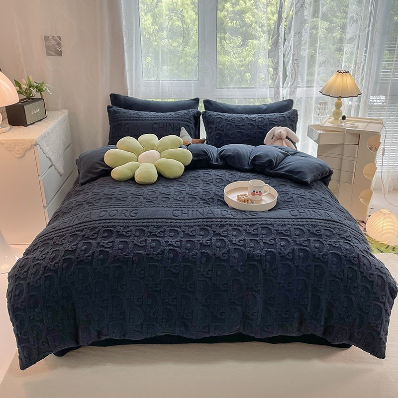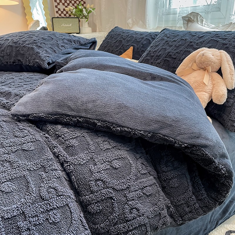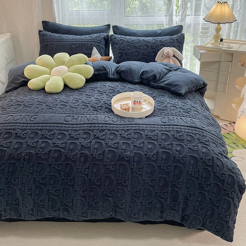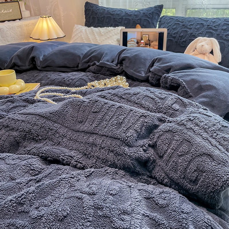 HL原创 2022新款色织提花牛奶绒四件套 提花绒-深蓝