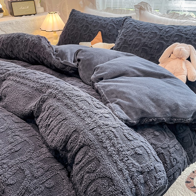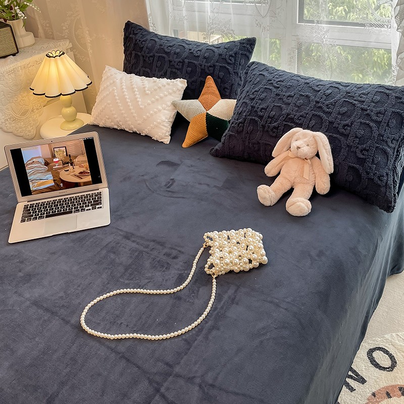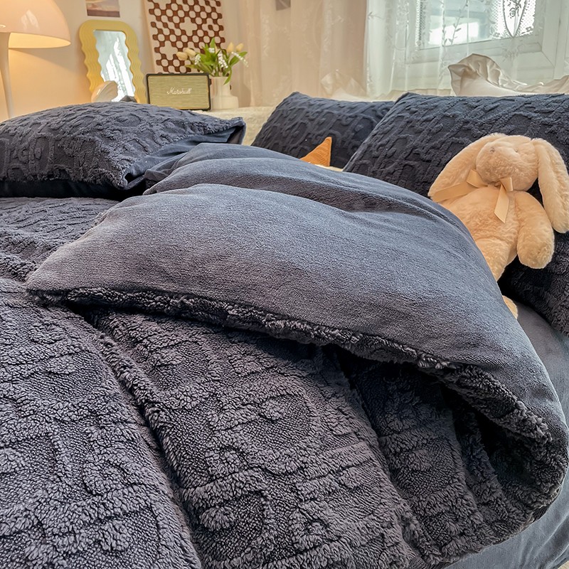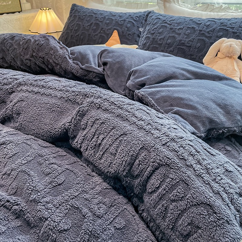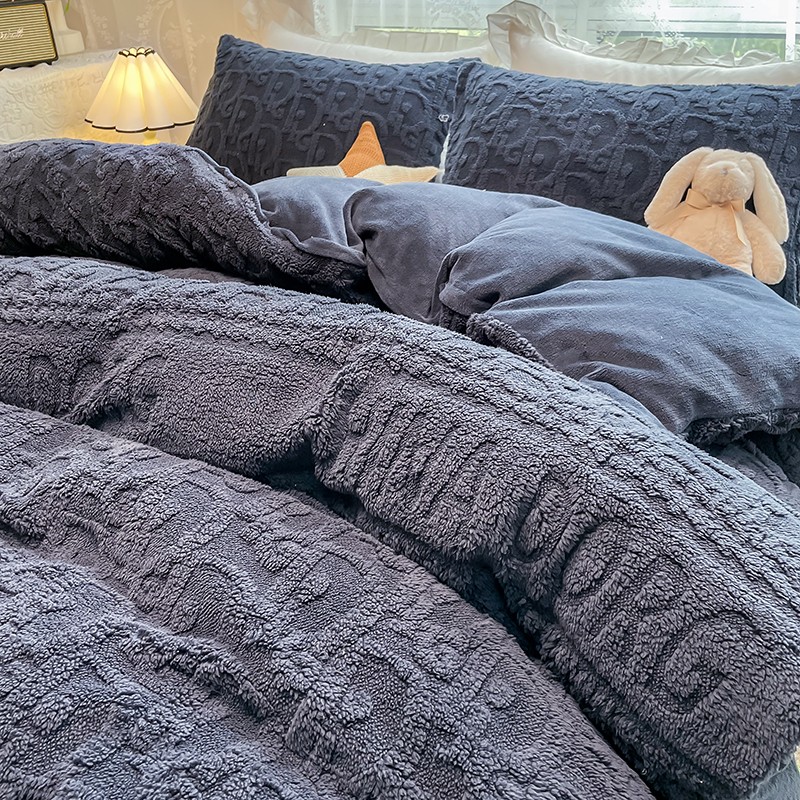 HL原创 2022新款色织提花牛奶绒四件套 提花绒-深蓝