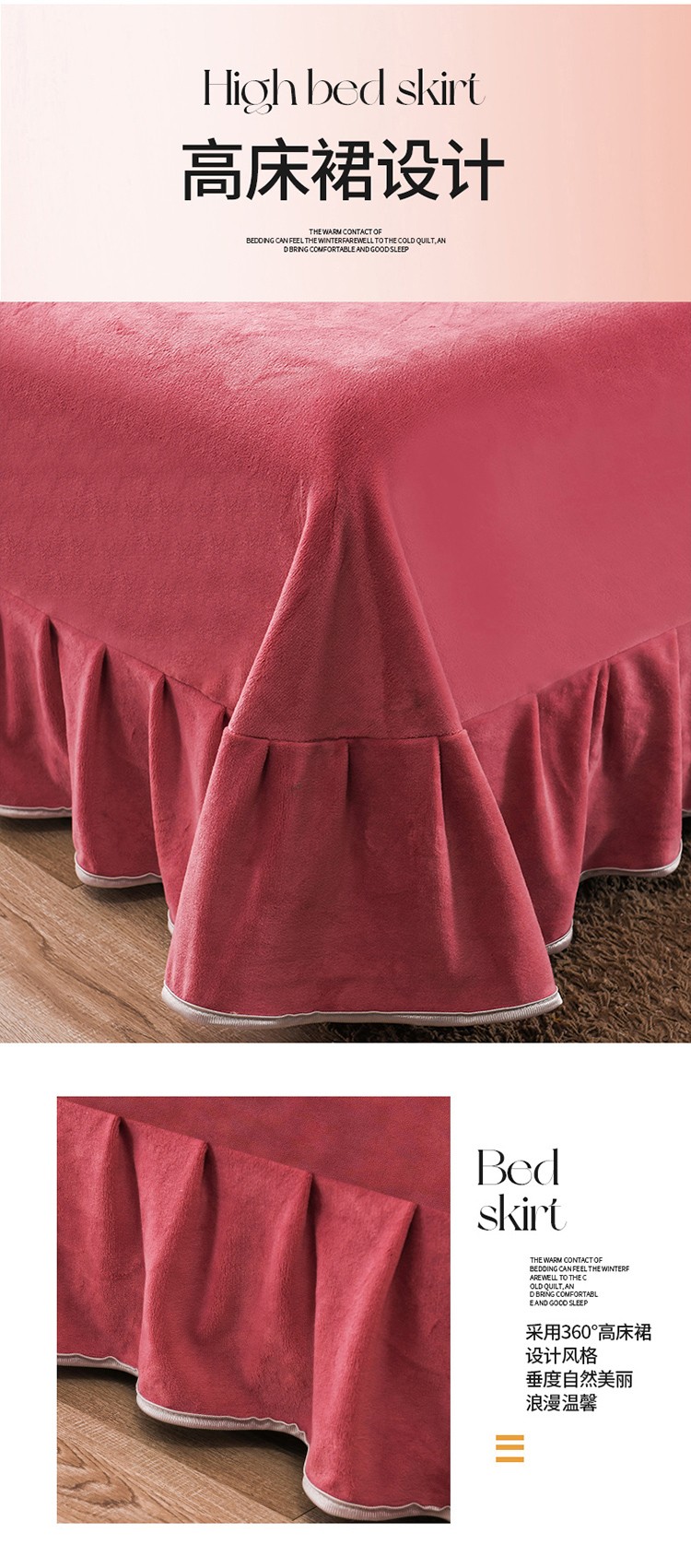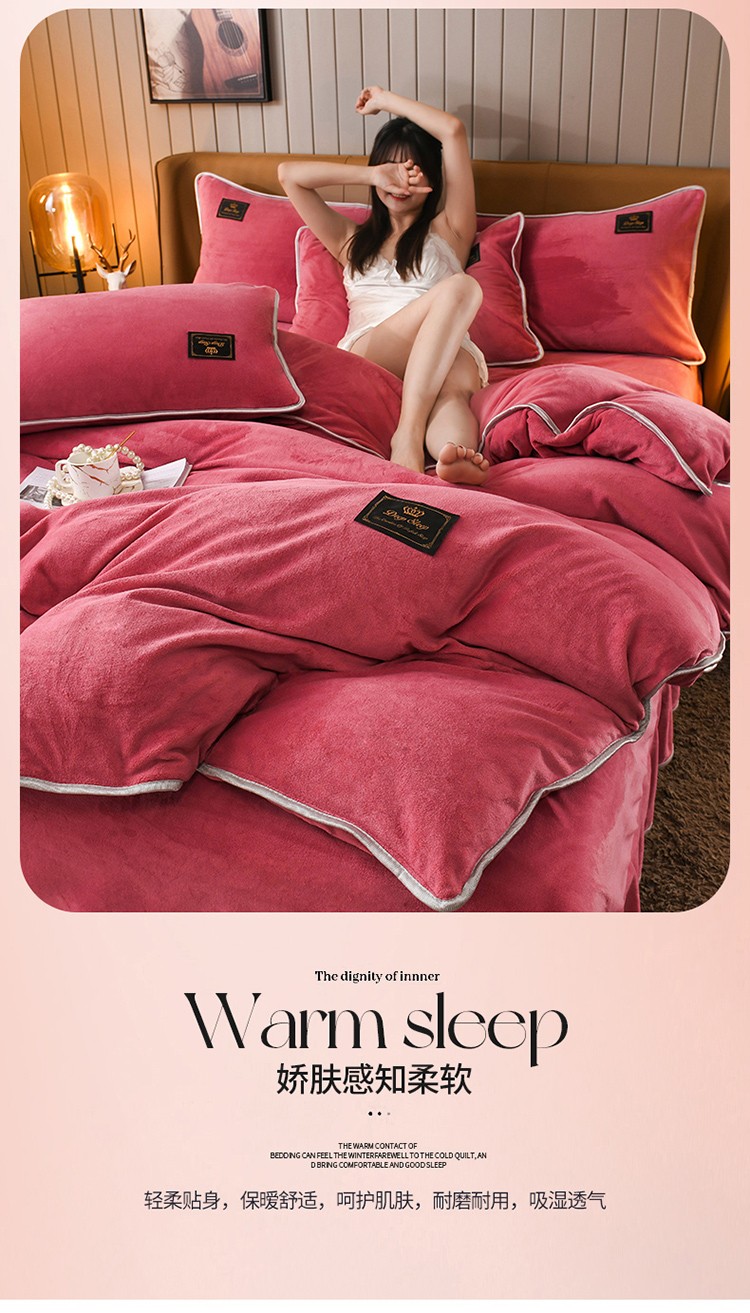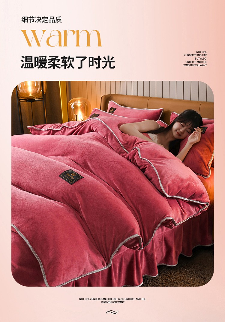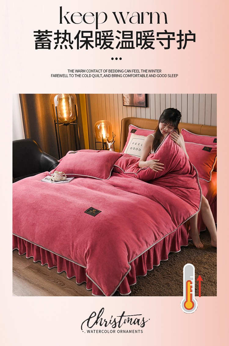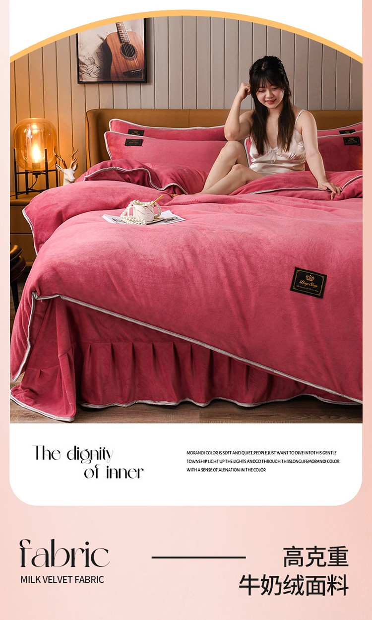 商品名称:德比尔斯 2025新款8.5斤床裙款高克重纯色牛奶绒四件套豆沙粉