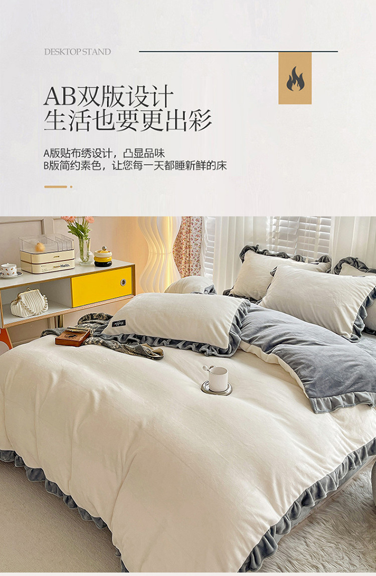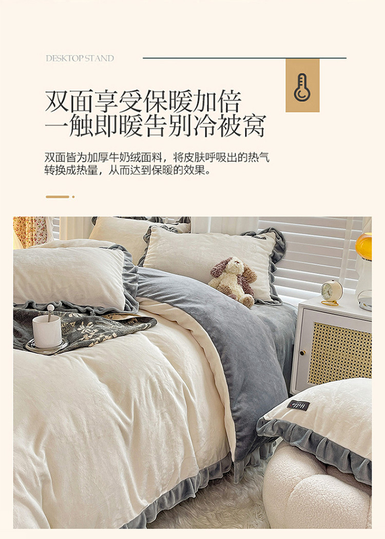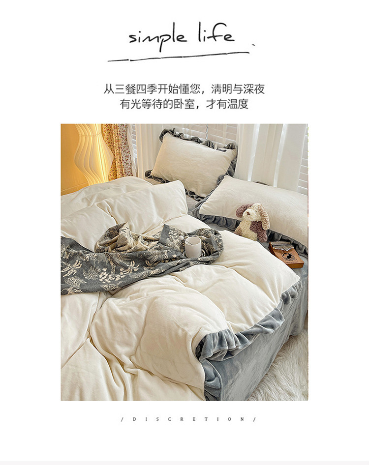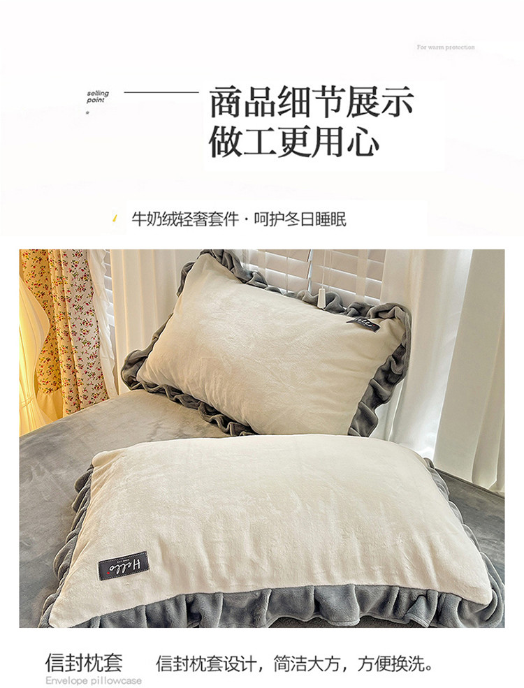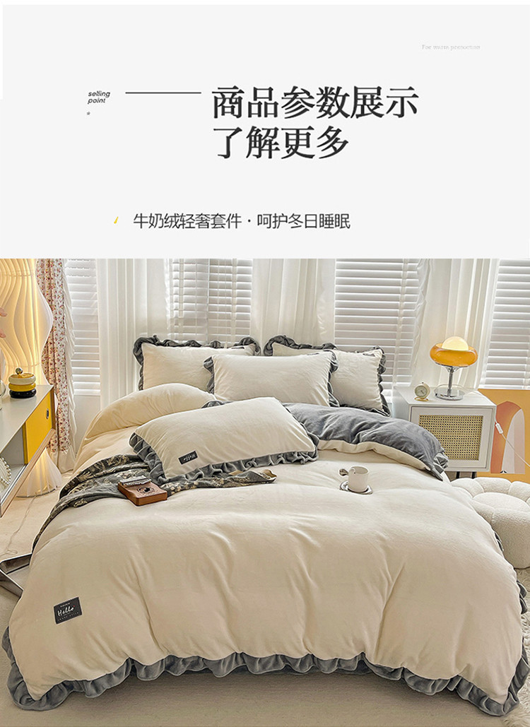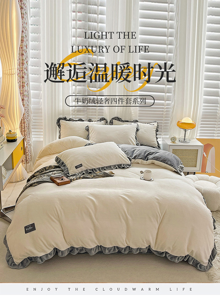 商品名称:雅萱 2022新款230g高克重贴标素色牛奶绒轻奢四件套灰白