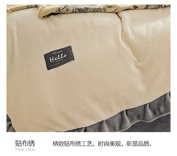 雅萱 2022新款230g高克重贴标素色牛奶绒轻奢四件套灰白