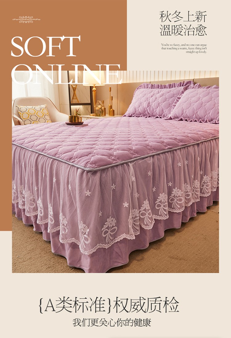 商品名称:宜凡2022新款纯色夹棉床裙 雪青
