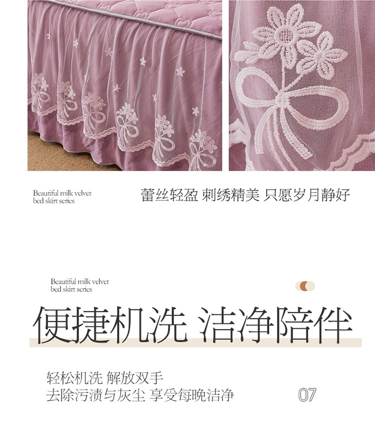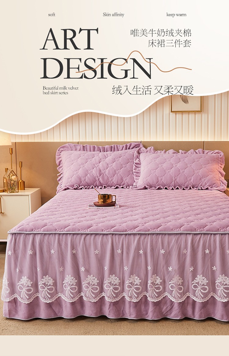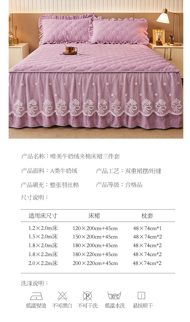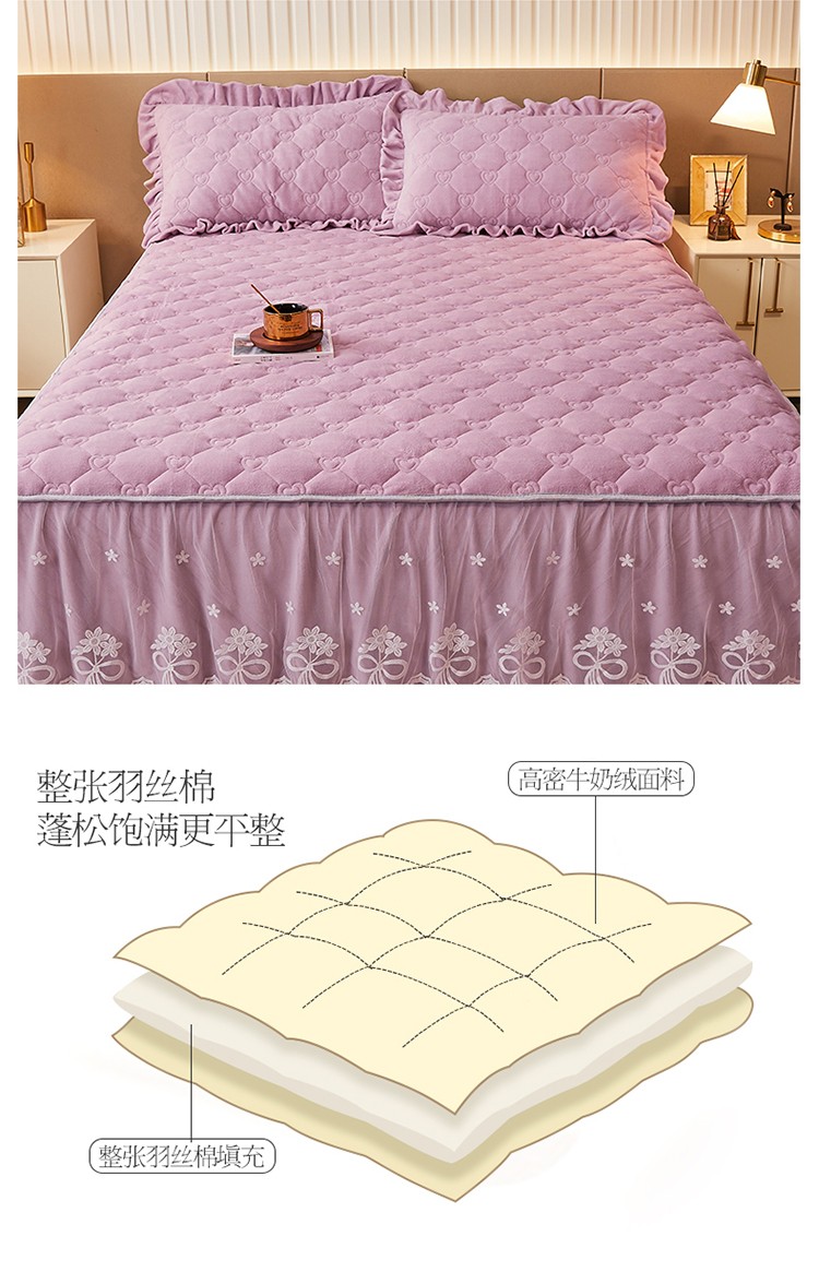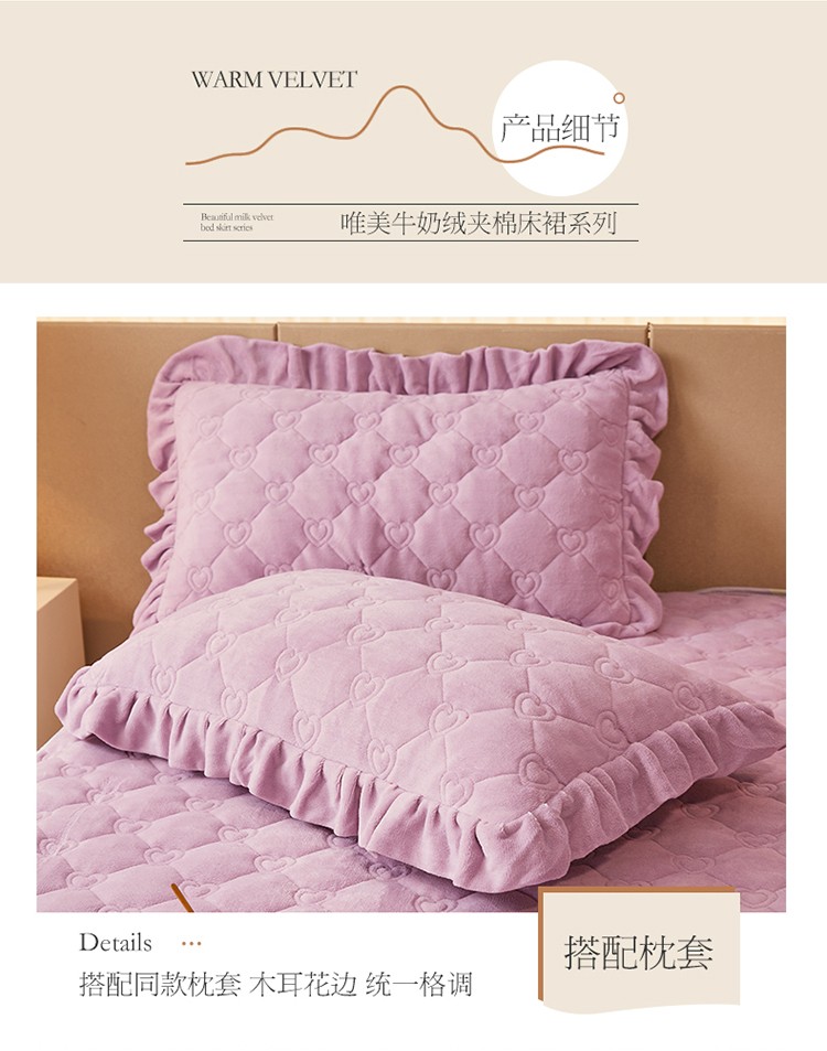 (总)宜凡家纺 2025新款兔绒提花牛奶绒夹棉床裙四件套,爱心 少女粉,爱心 粉紫,爱心 驼色,蝶舞 大红,蝶舞 米色,蝶舞 浅紫,蝶舞 玉色,简爱 苍青,简爱 豆沙紫,简爱 玉色,樱桃 苍青,樱桃 豆沙紫,樱桃 奶油白