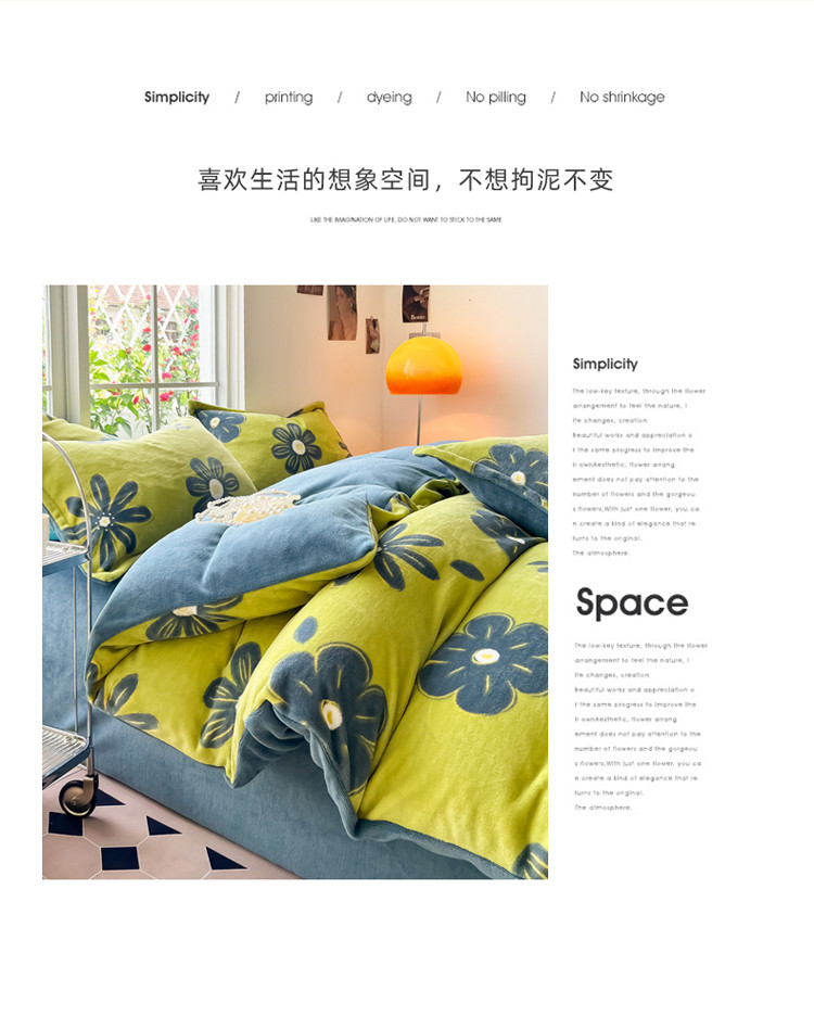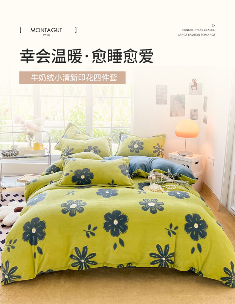 当前位置: 91家纺网 > 商品网购 > 床品套件 > 四件套 > 牛奶绒四件套 > 米莱 2022新款牛奶绒小清新印花四件套 浪漫花园