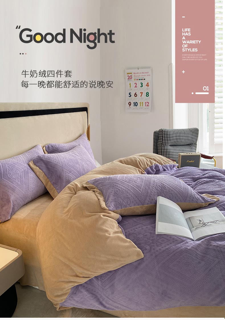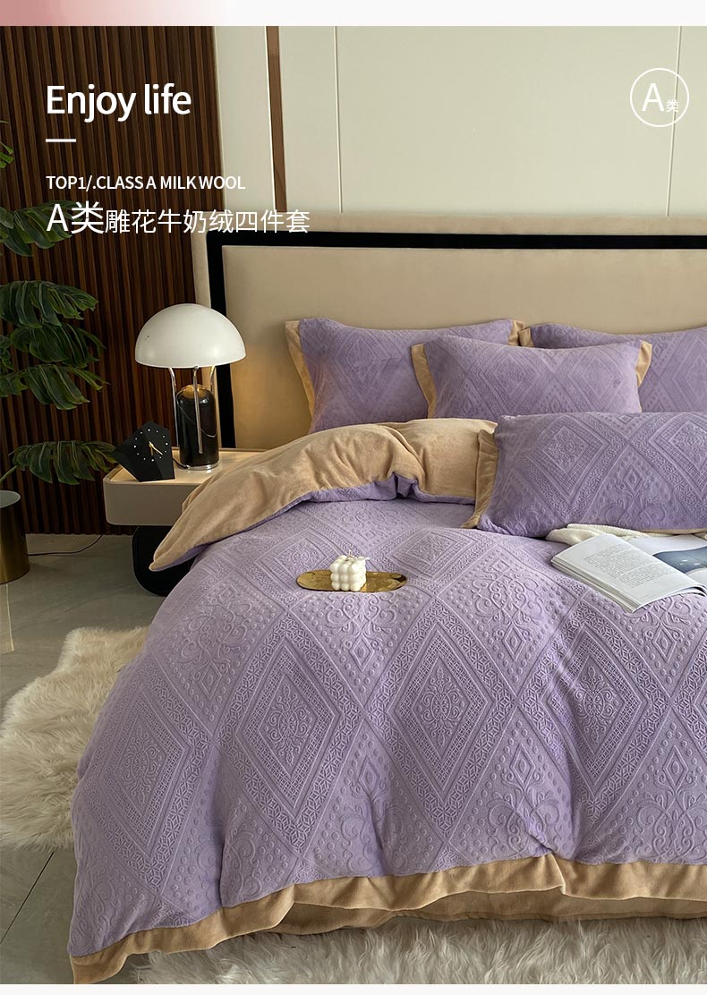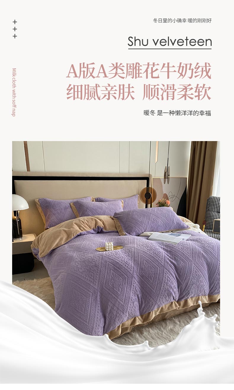 (总)铠畅家纺 2025新款丰眠系列牛奶绒床盖四件套,丰眠-粉玉,丰眠-海藻青,丰眠-灰紫,丰眠-奶油咖,丰眠-雾蓝