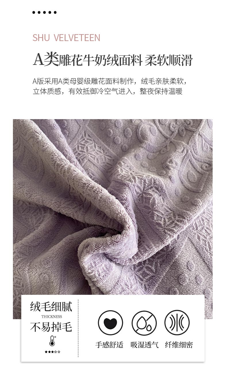 商品名称:铠畅 2022新款230克轻奢简约烂花绒牛奶绒剪花四件套 欧式经典-紫