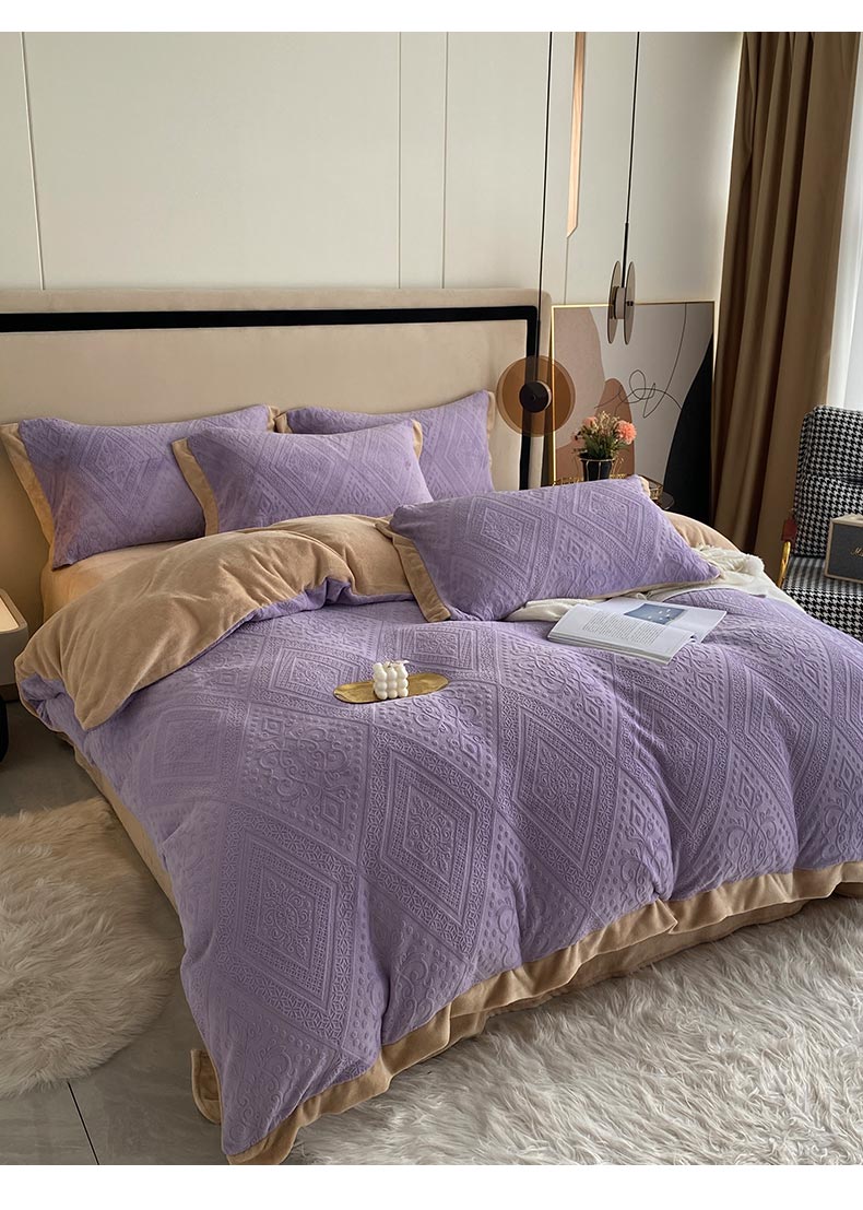铠畅 2022新款230克轻奢简约烂花绒牛奶绒剪花四件套 欧式经典-紫