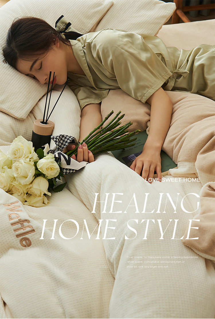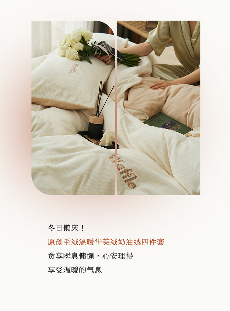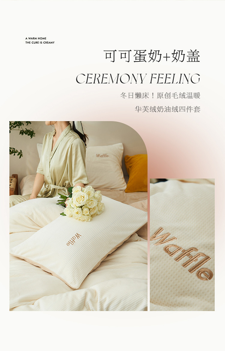 晨曦家纺 2022新款原创毛绒温暖华芙绒奶油绒四件套 可可蛋奶+奶盖