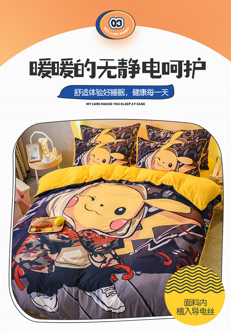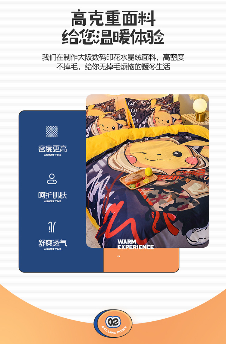 3、A面为170克高克重水晶绒数码印花,颜色鲜艳不掉色,B面为210克高克重牛奶绒,有导电丝,不掉毛无静电。