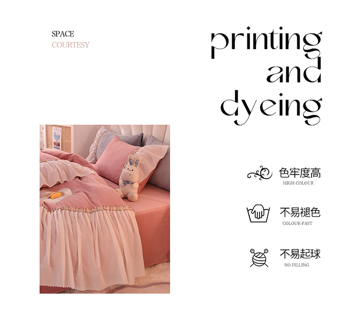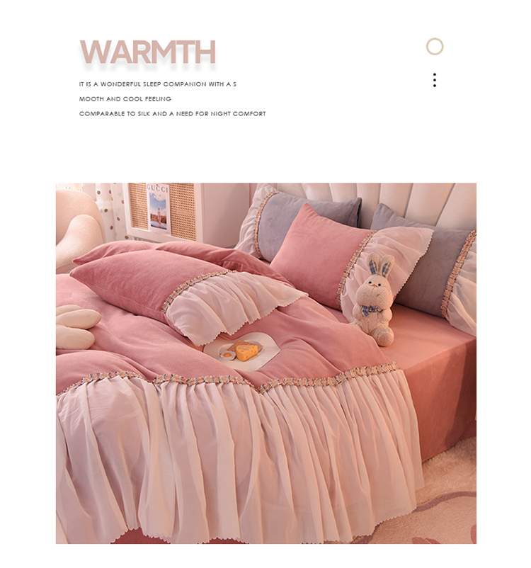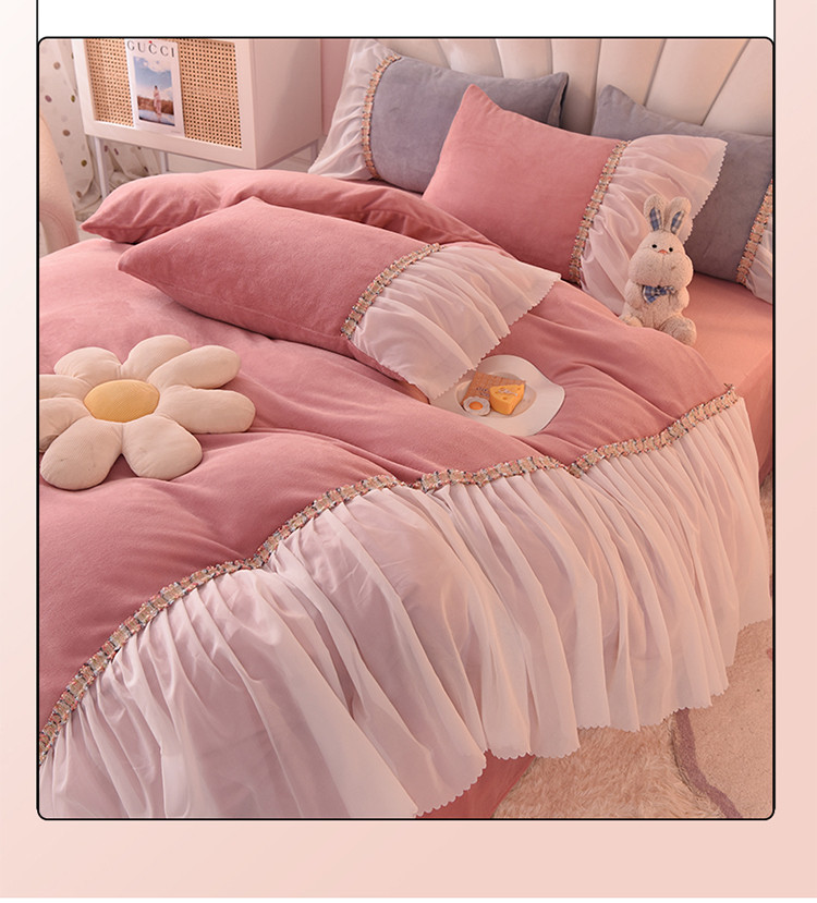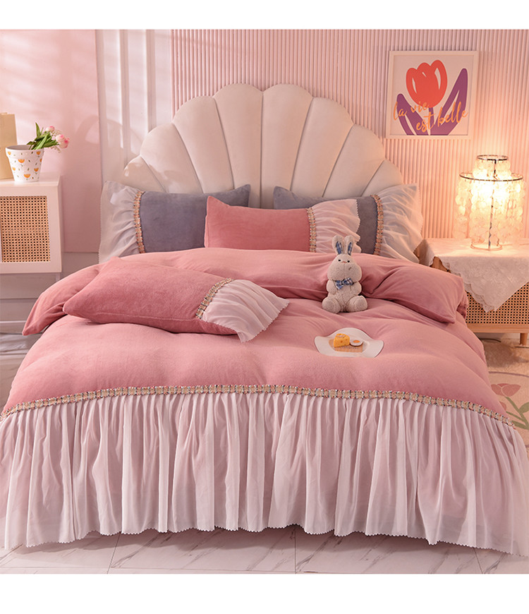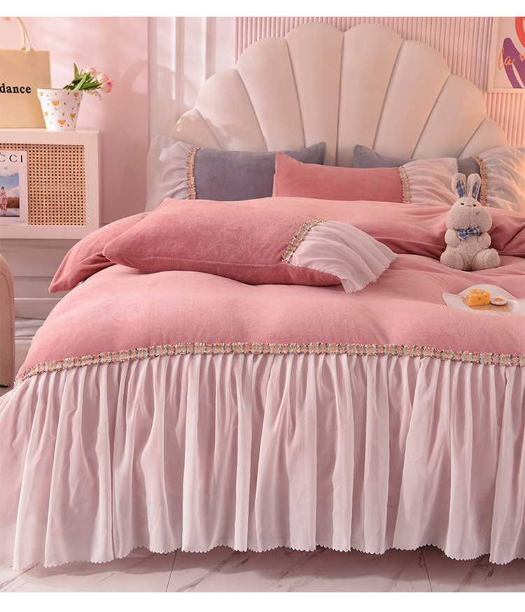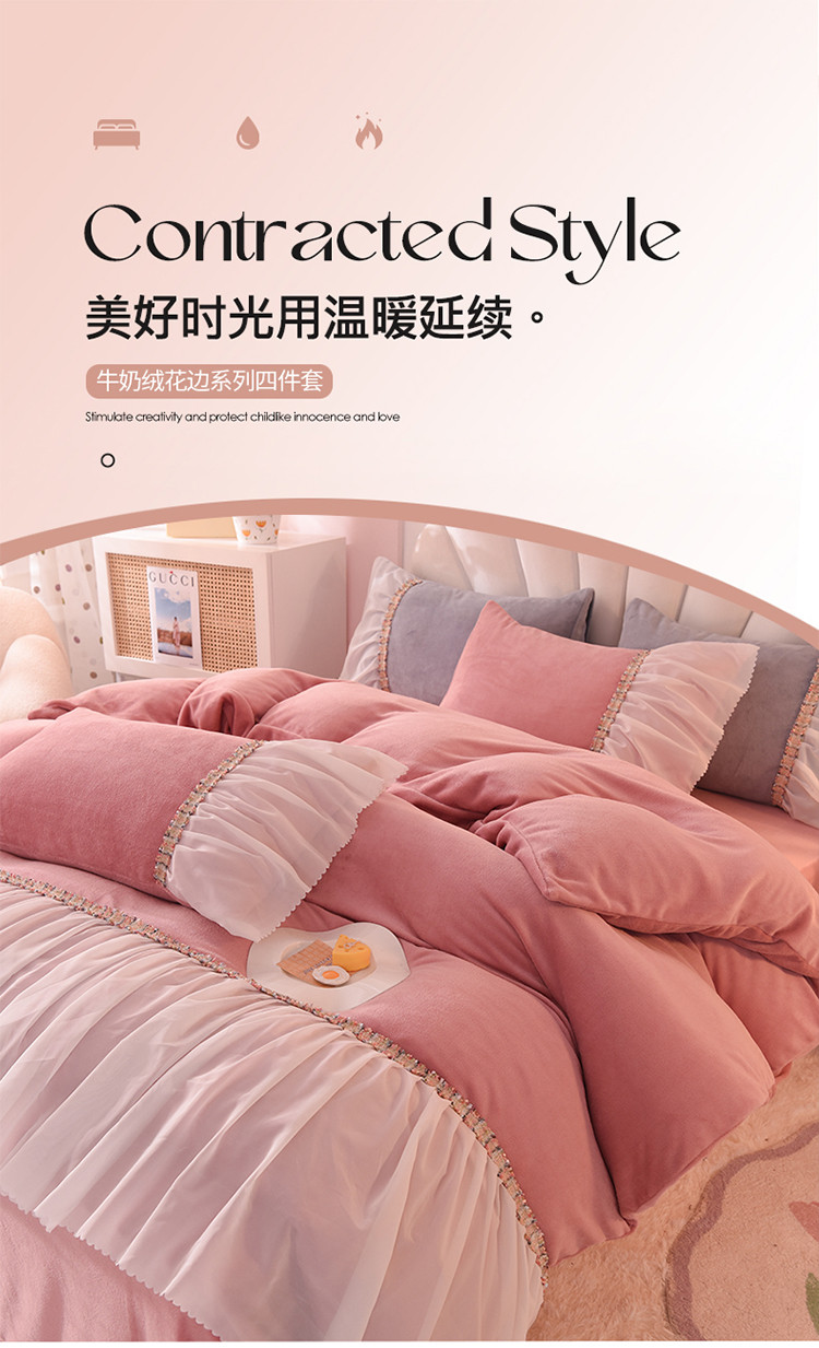 当前位置: 91家纺网 > 商品网购 > 床品套件 > 四件套 > 牛奶绒四件套 > 艾米家居 2022秋冬新款牛奶绒花边四件套爱莎系列 豆沙