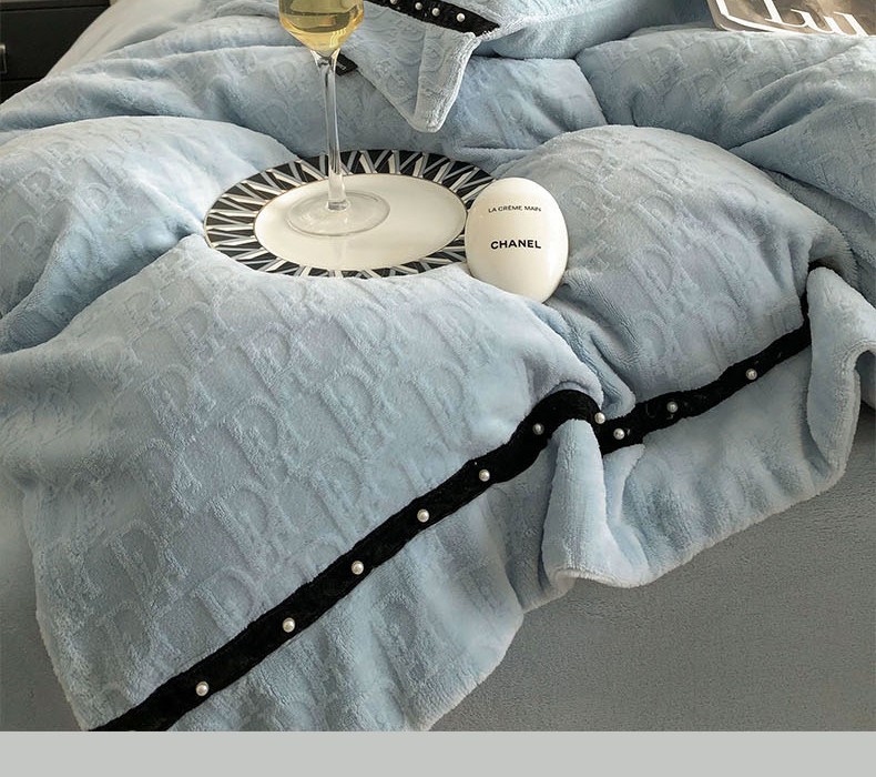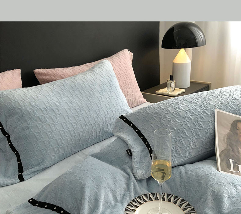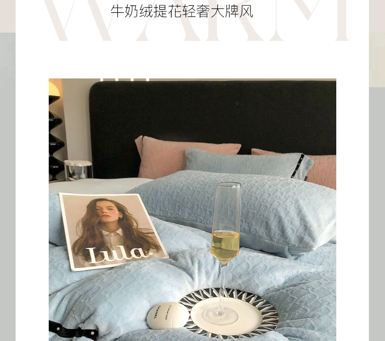 商品名称:卡姿 2022新款牛奶绒提花轻奢大牌风四件套 小迪湖蓝