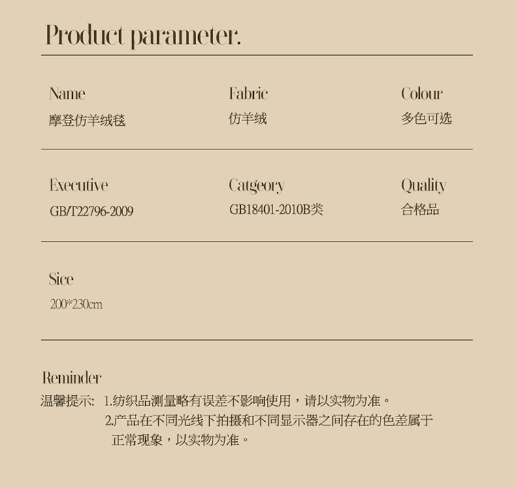 商品名称:凯轩 摩登仿羊绒毛毯毯子 豆沙