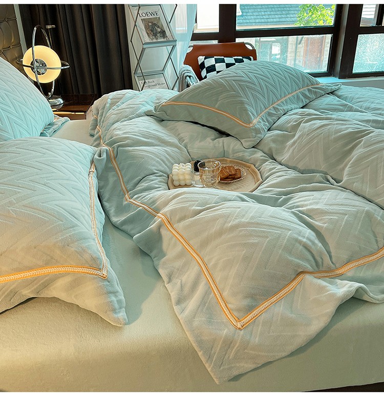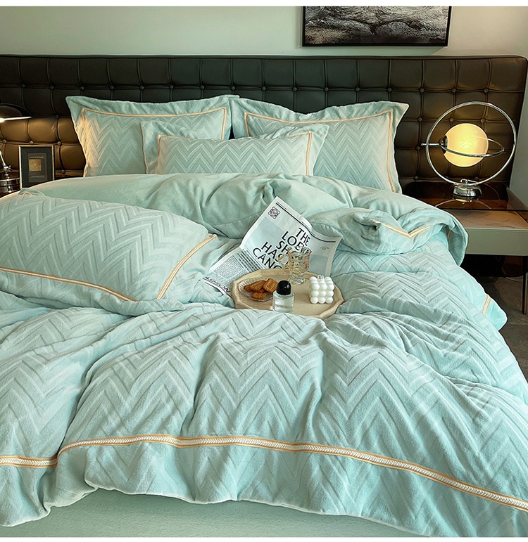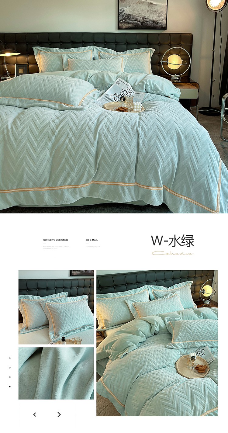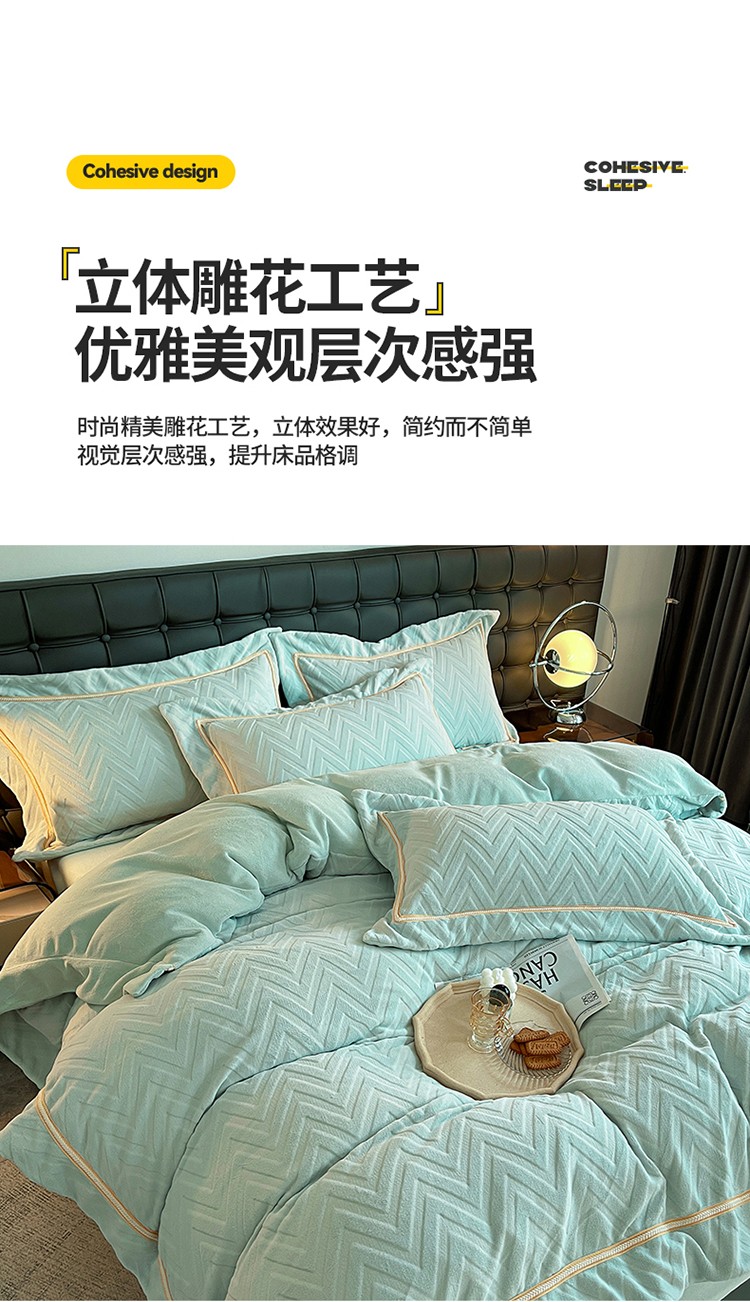 首尔 2022新款雕花牛奶绒四件套-W W-水绿