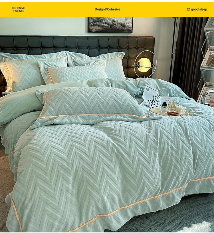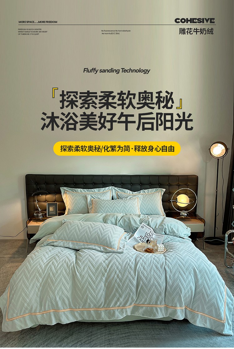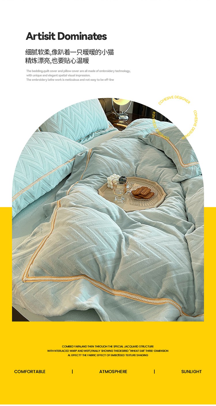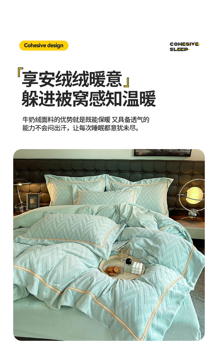 首尔 2022新款雕花牛奶绒四件套-W W-水绿