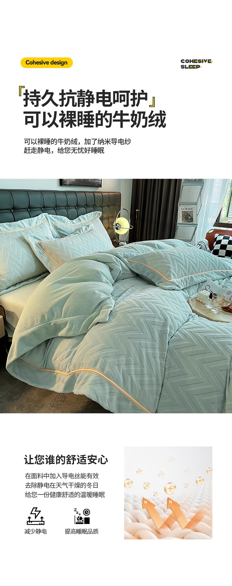 商品名称:首尔 2022新款雕花牛奶绒四件套-W W-水绿