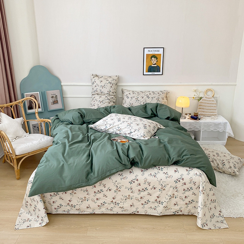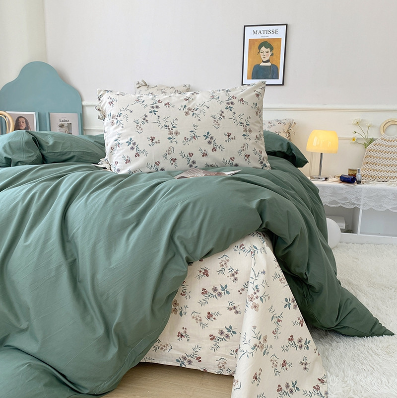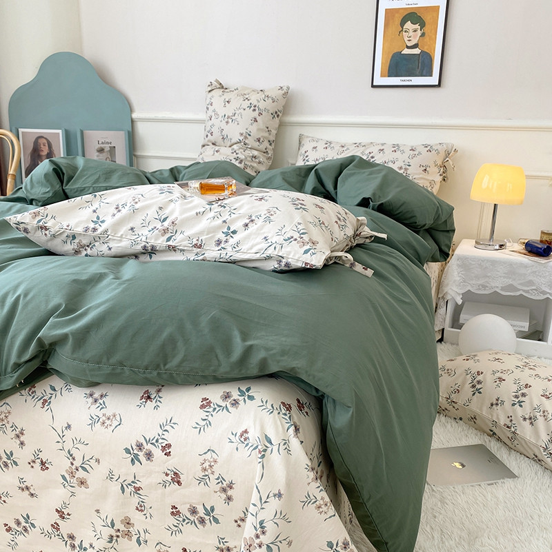一米阳光 新款蝴蝶结色织水洗棉小碎花撞色四件套-情怀系列 典雅绿