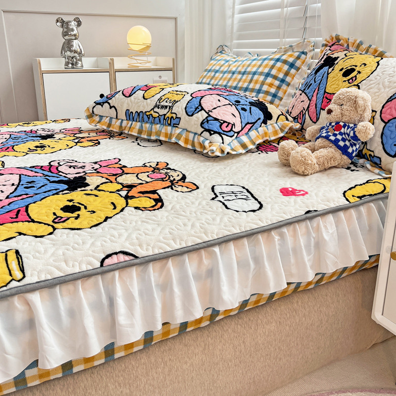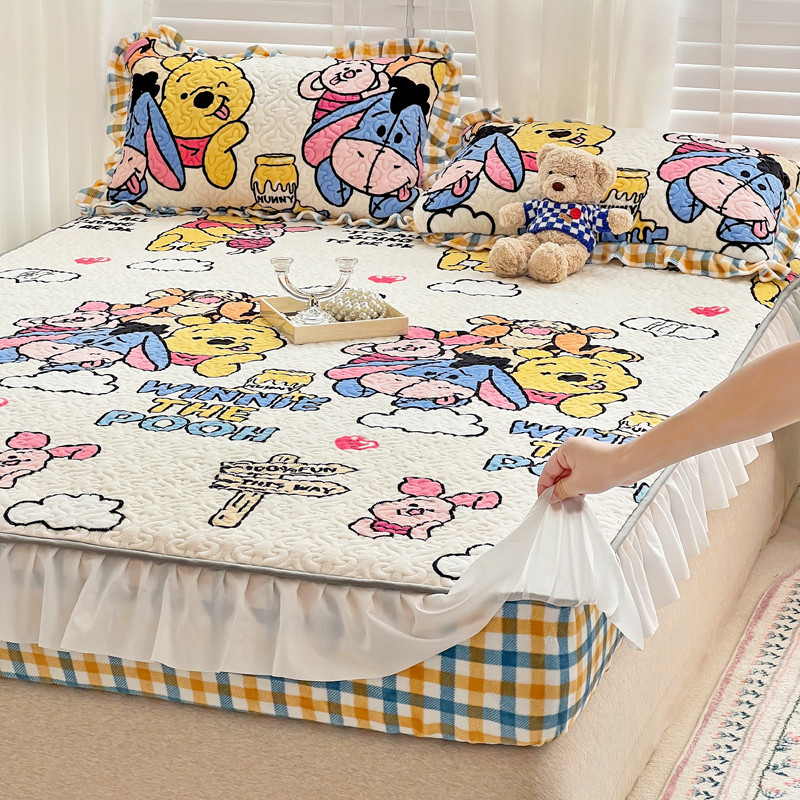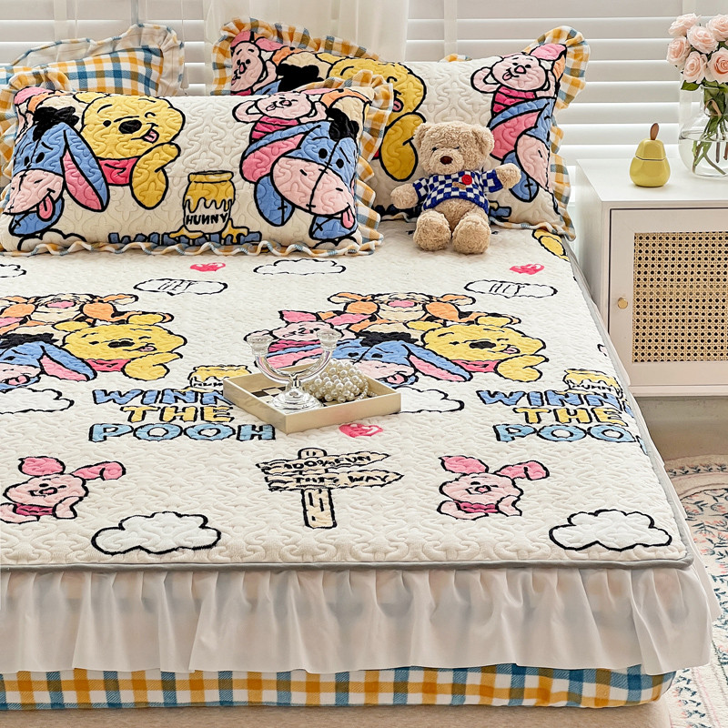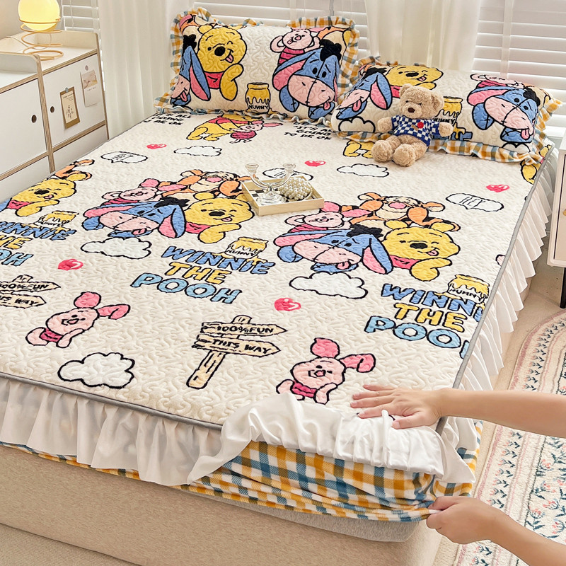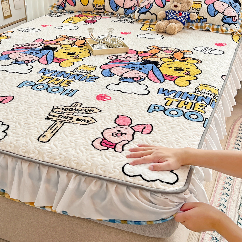 金丝鸟 2022新款迪士尼系列夹棉绗缝牛奶绒花边床笠 甜蜜动物园