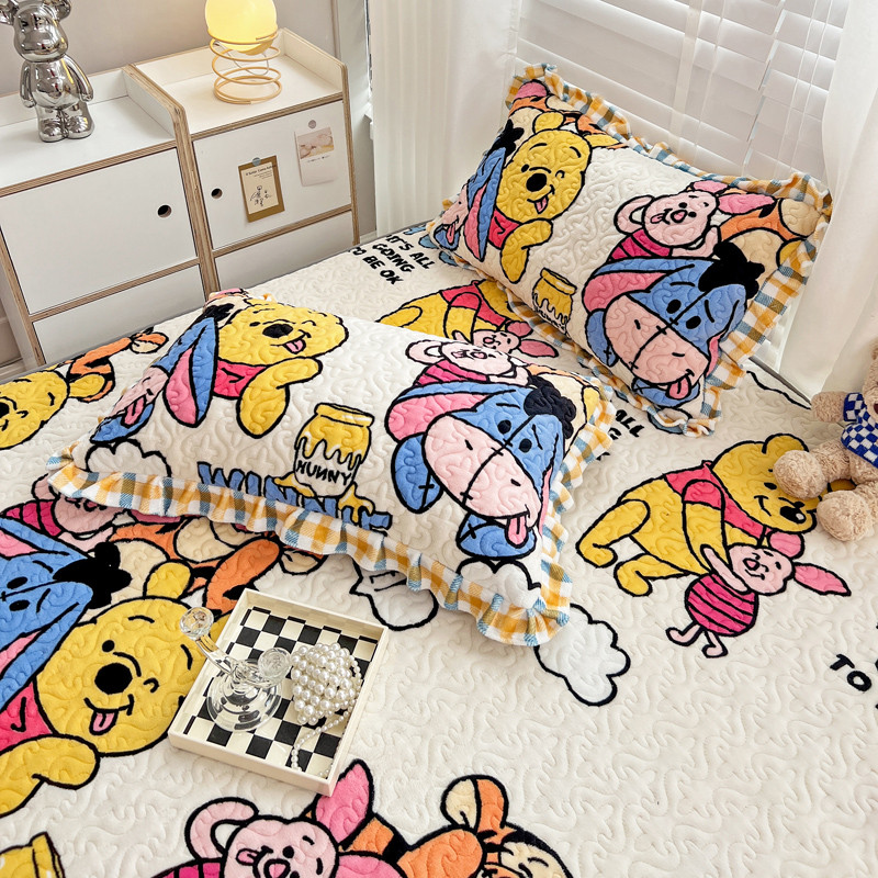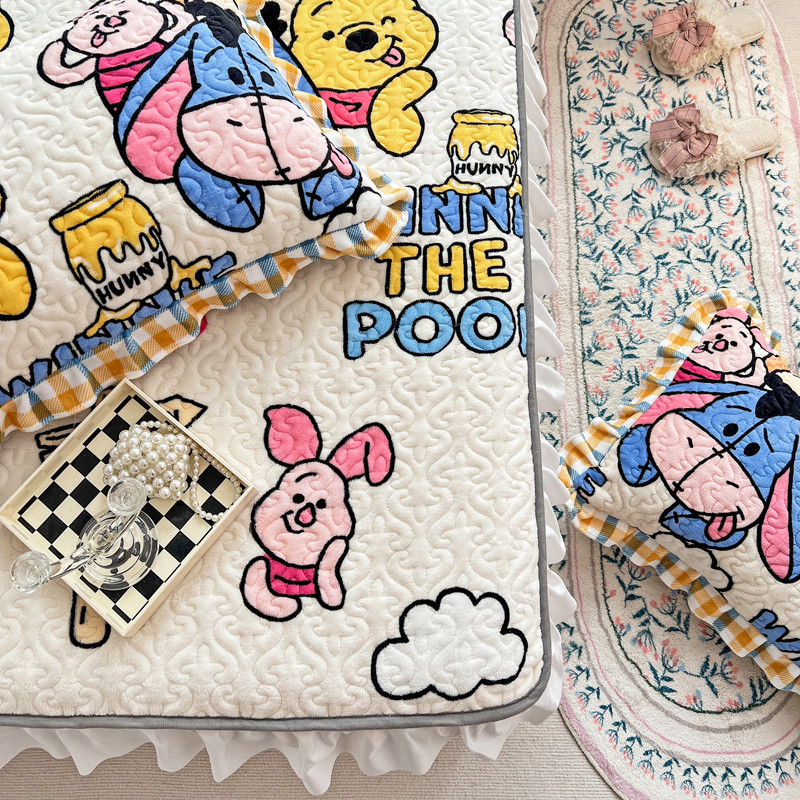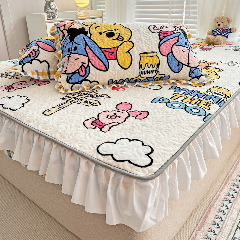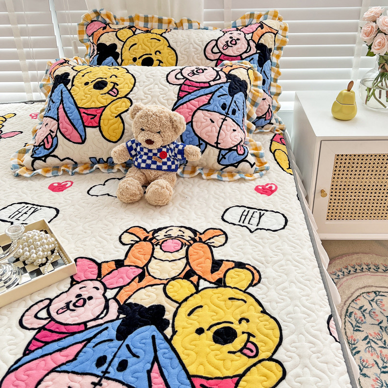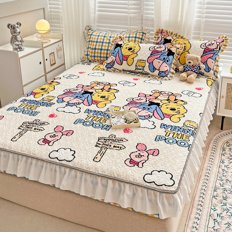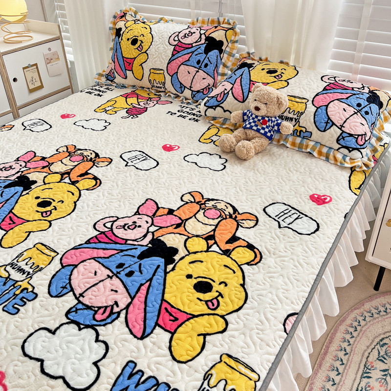 金丝鸟 2022新款迪士尼系列夹棉绗缝牛奶绒花边床笠 甜蜜动物园
