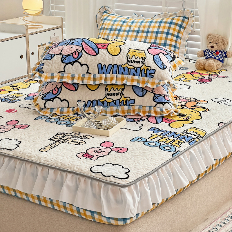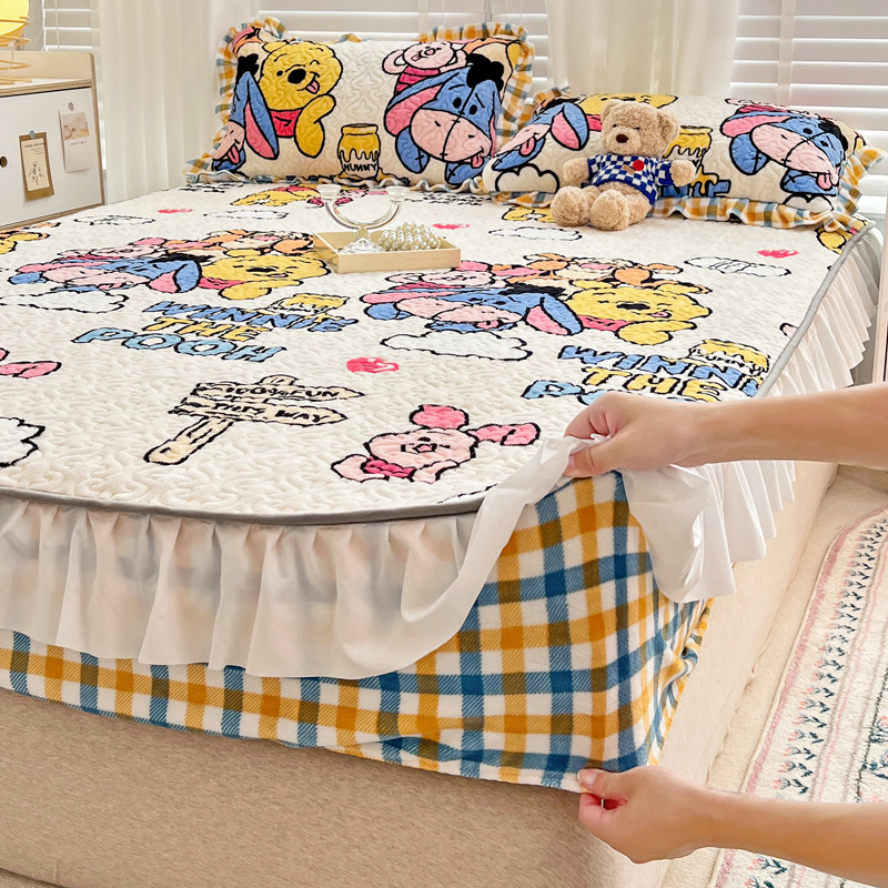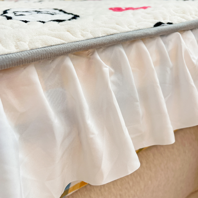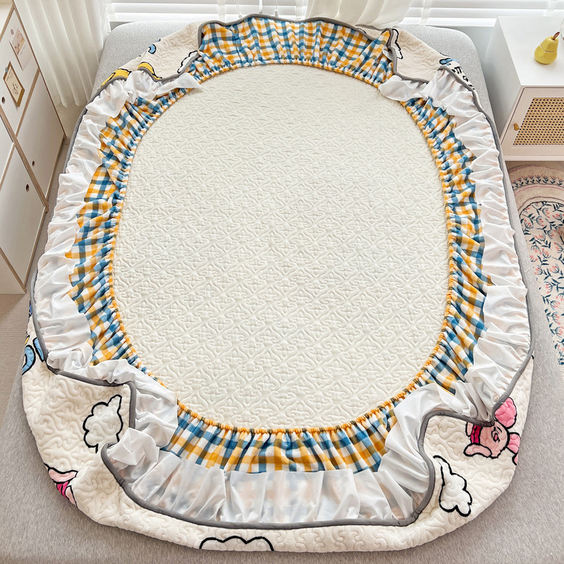 商品名称:金丝鸟 2022新款迪士尼系列夹棉绗缝牛奶绒花边床笠 甜蜜动物园