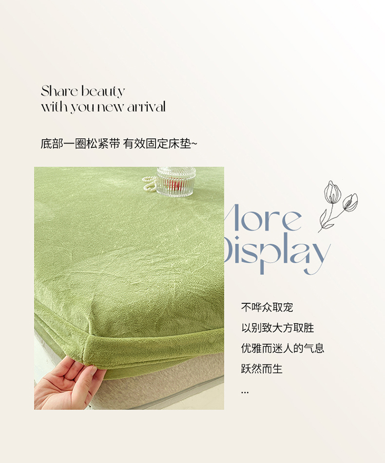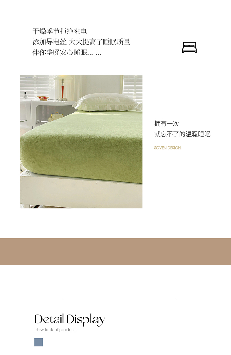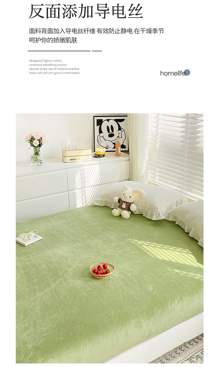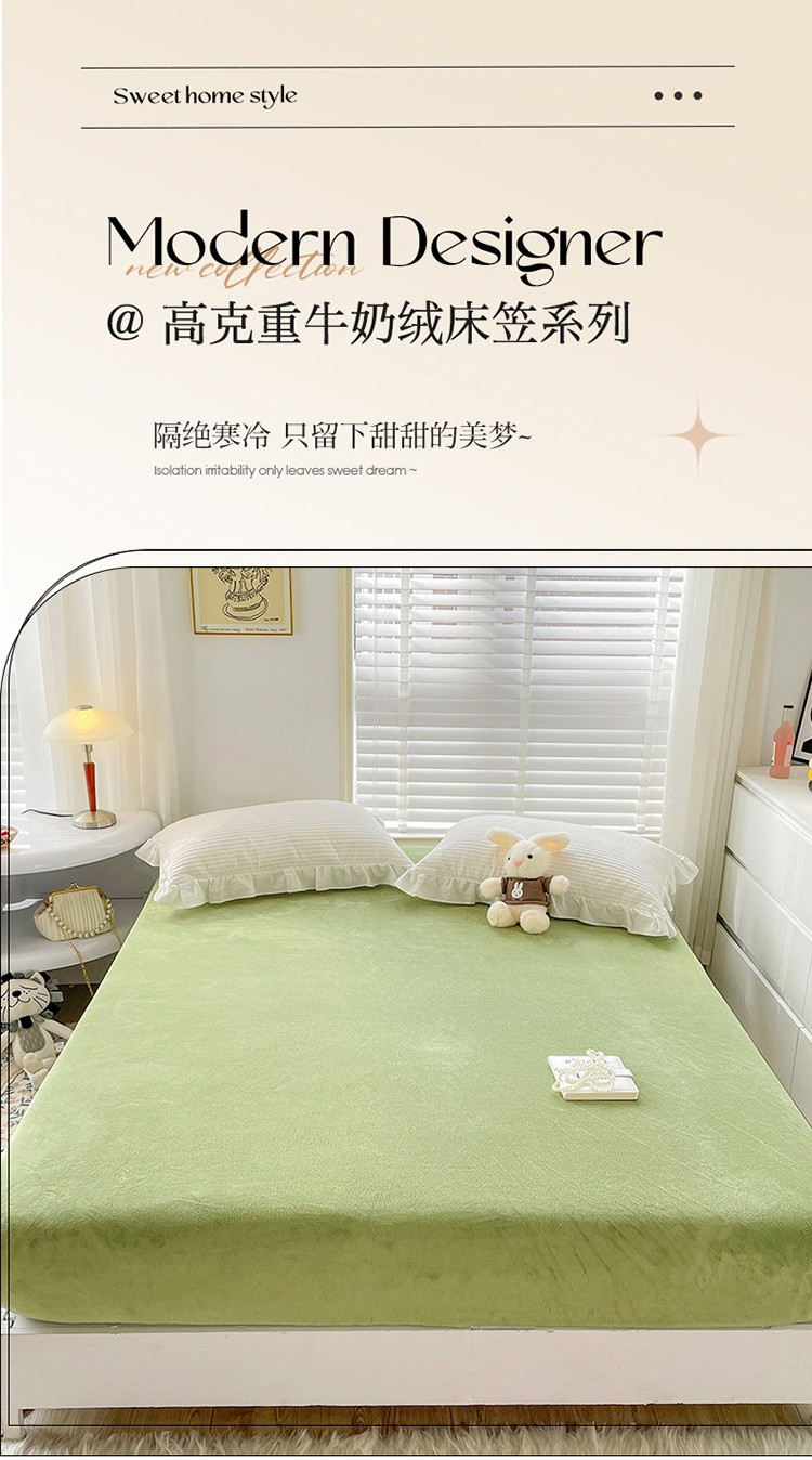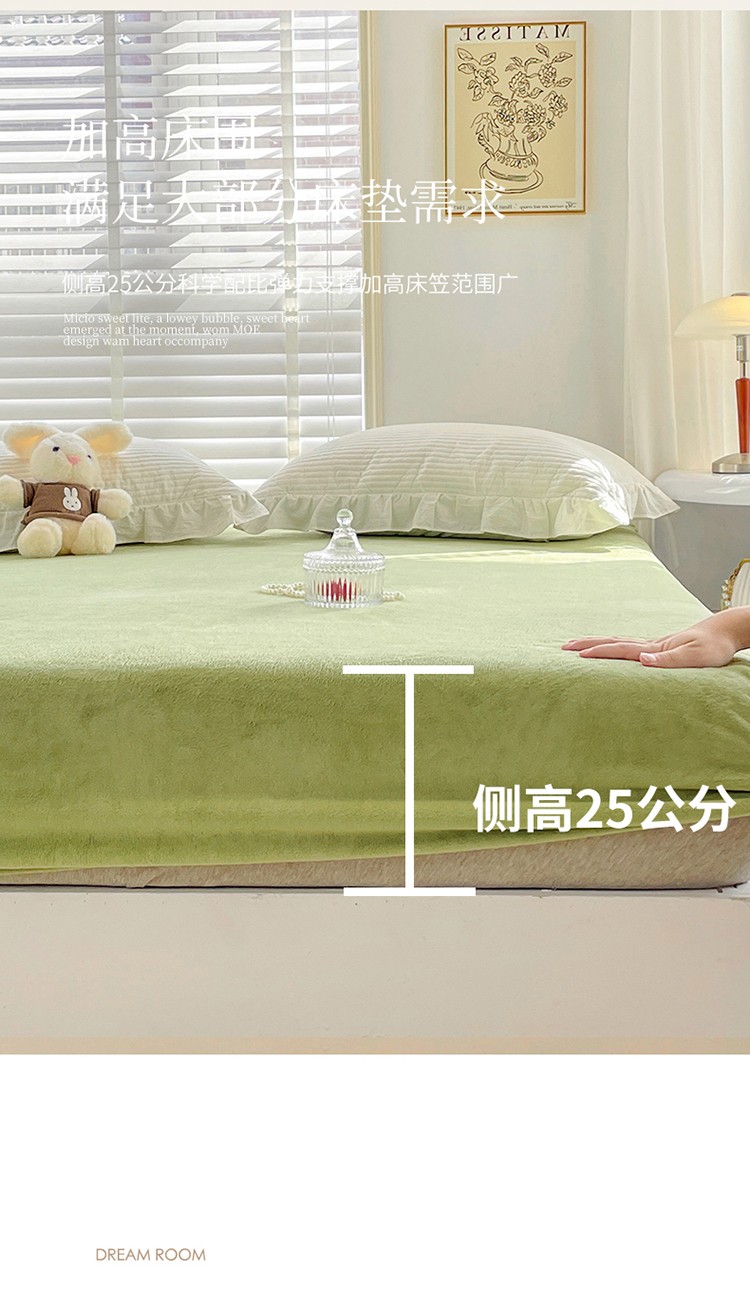 商品名称:N先生 2023新款纯色牛奶绒单床笠 牛油果绿
