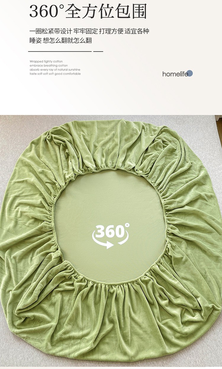 N先生 2023新款纯色牛奶绒单床笠 牛油果绿