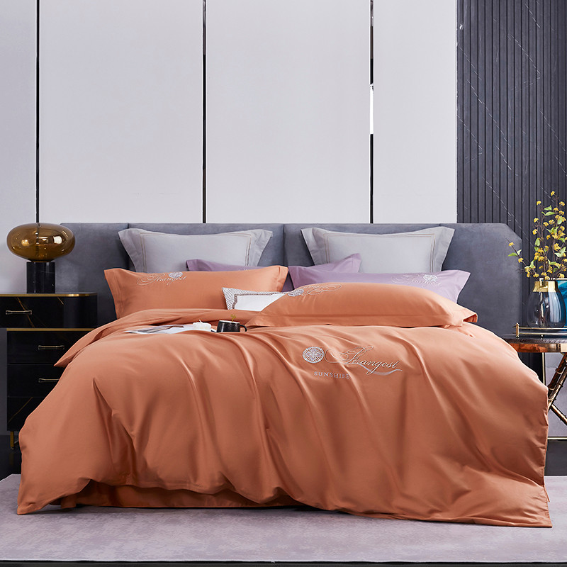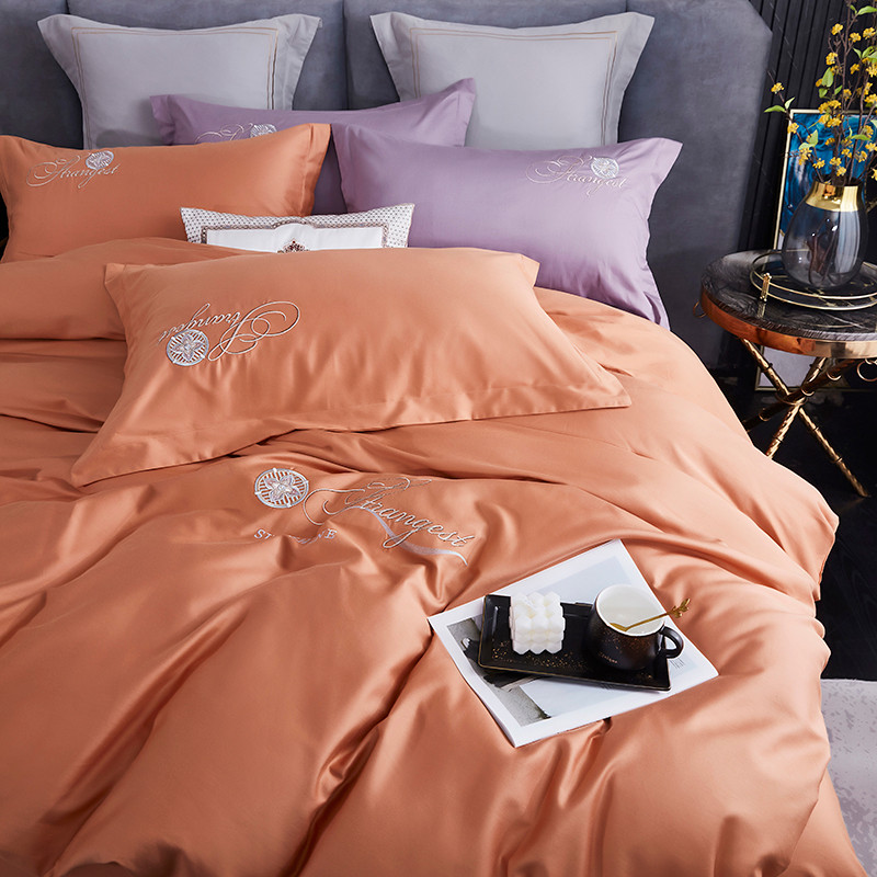 (总)玖玖爱家纺 2023新款120支贡缎长绒棉刺绣梦柔系列四件套,梦柔-香槟金,梦柔-香橙桔,梦柔-高级灰,梦柔-水蓝,梦柔-芙蓉玉
