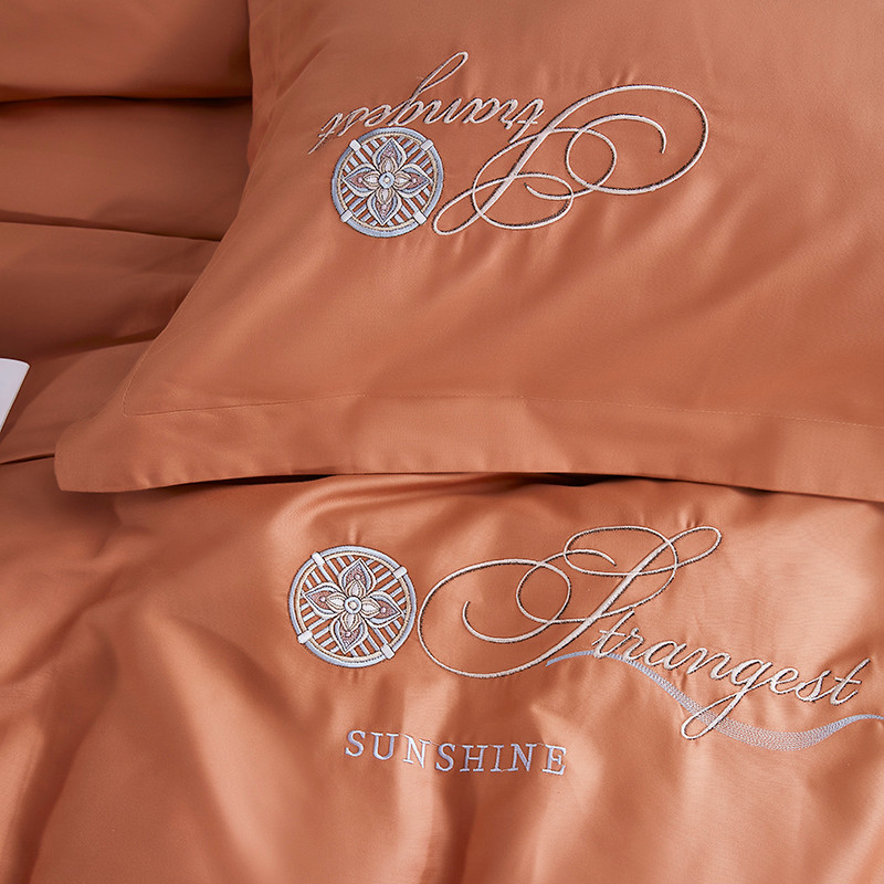 玖玖爱 2022新款80支全棉贡缎刺绣四件套 巴洛时尚桔黄