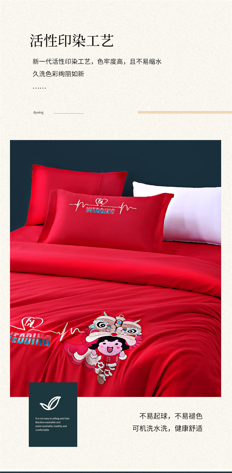 当前位置: 91家纺网 > 商品网购 > 床品套件 > 四件套 > 婚庆四件套 > 玉雅家纺 2025新款婚庆亲肤棉刺绣四件套 萌狮报喜