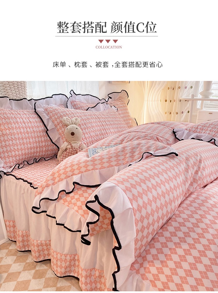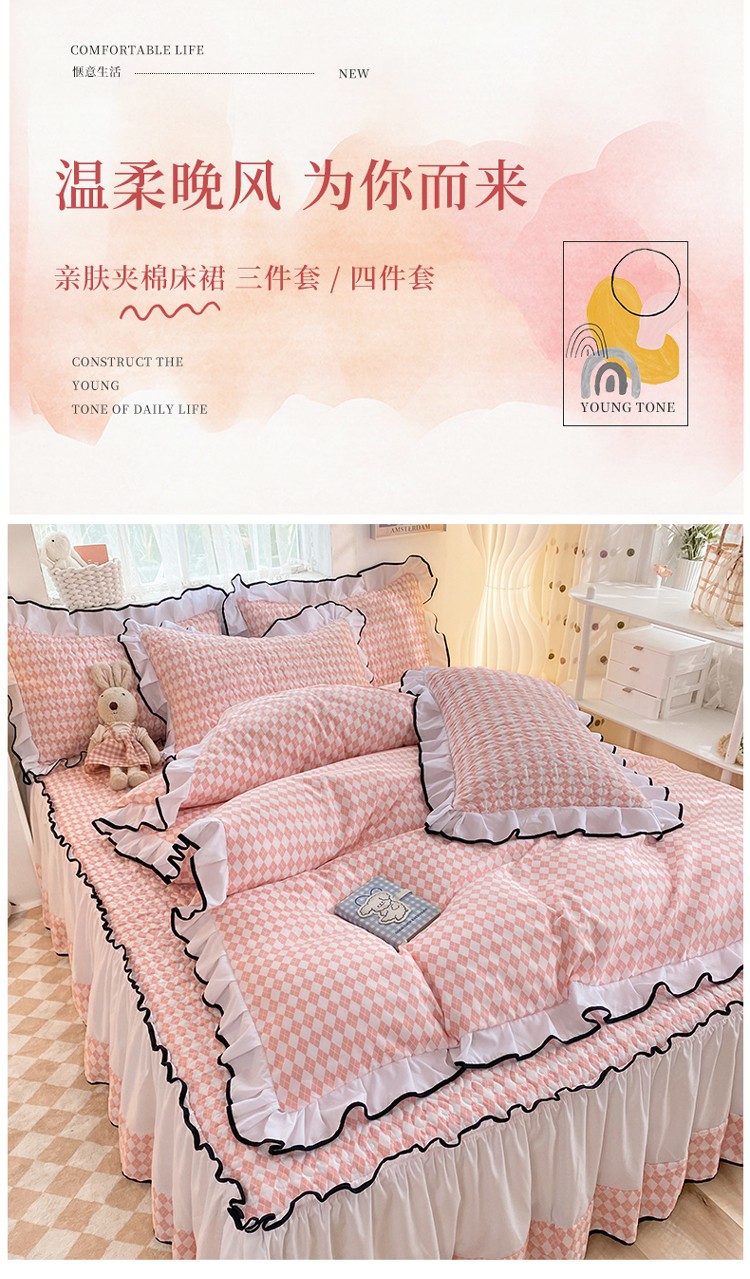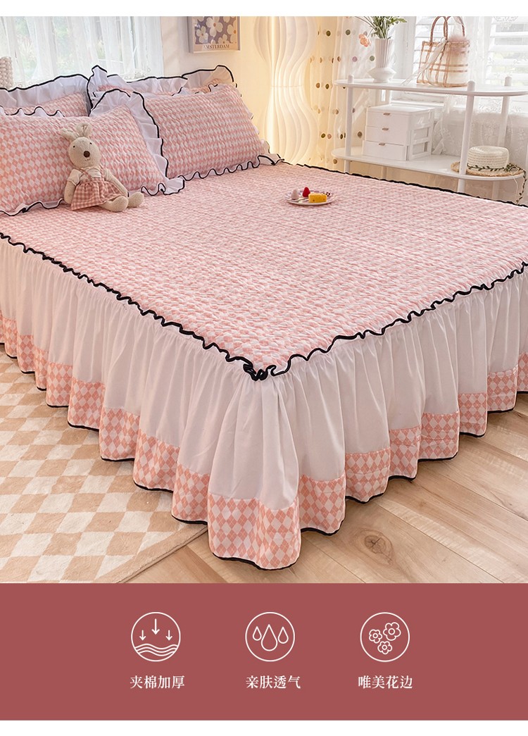 当前位置: 91家纺网 > 商品网购 > 床品套件 > 四件套 > 全棉普通四件套 > 金盛皇朝2025新款加厚亲肤床裙夹棉单件三件套四件套 菱形格