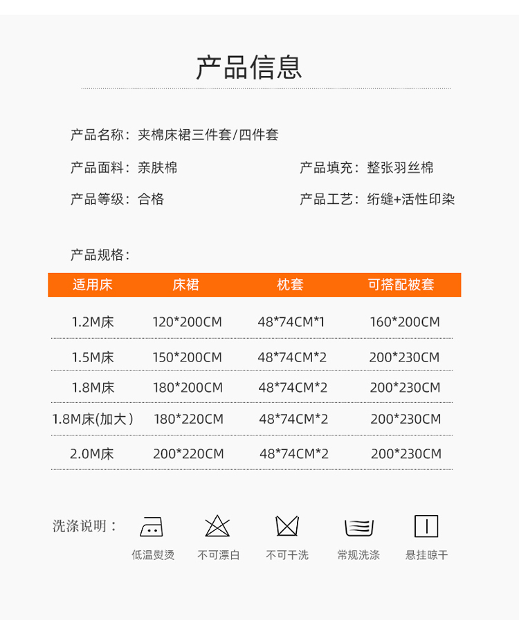 1.8米加大床裙(床裙180*220cm) 四件套 | ¥87.00 |