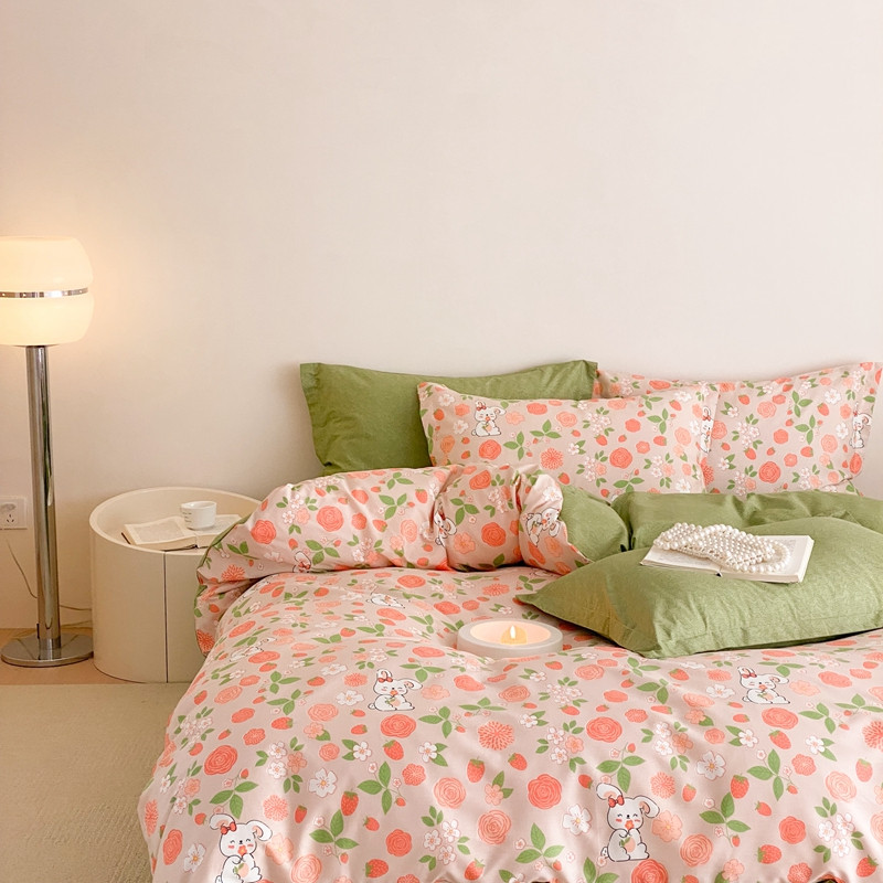 (总)珺柔家纺 2023新款13372全棉印花四件套,朵拉花园,粉色郁金香 ,可爱兔,迷你兔,太阳花,顽皮狗,喜结连理,薰衣草