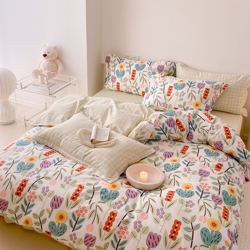 (总)2023新款40支纱全棉13070锁边工艺款四件套系列,格子爱心,嘉兰,咖条,朗尼,小兔兔,星星兔