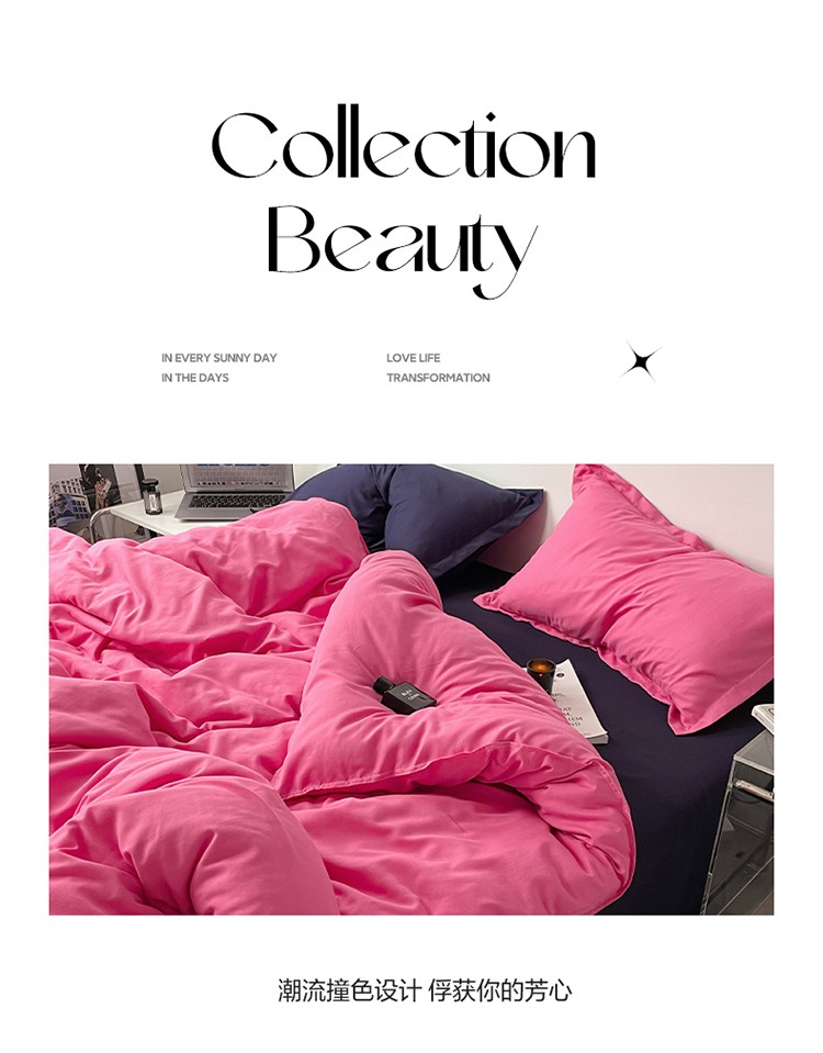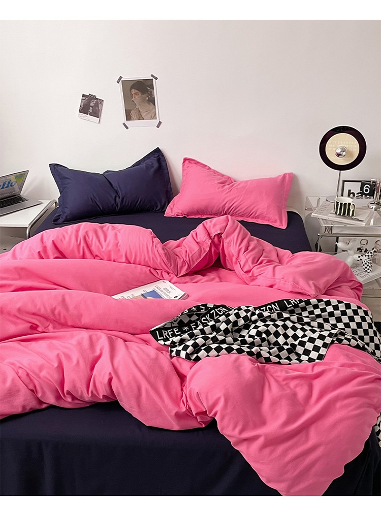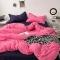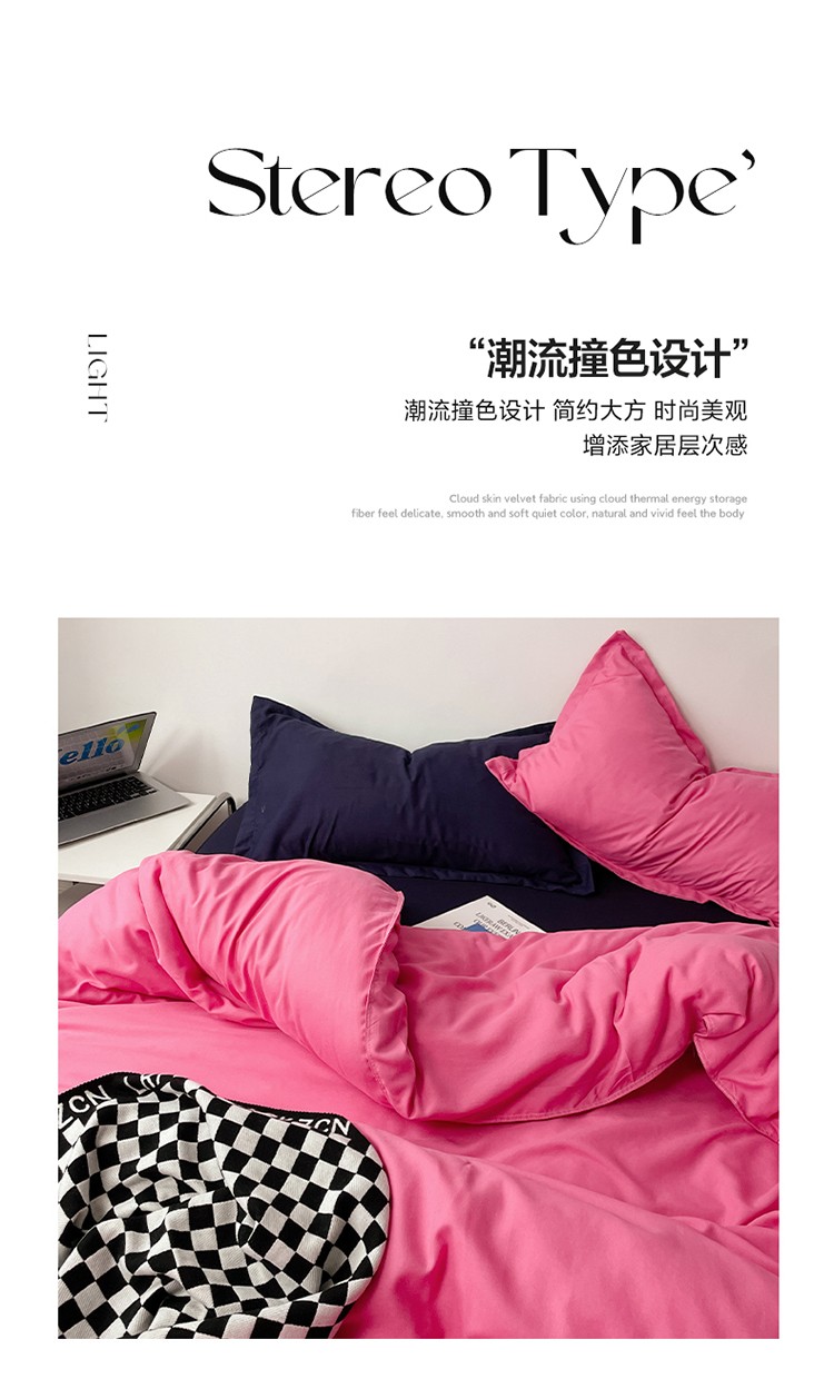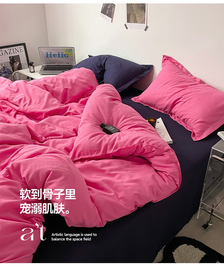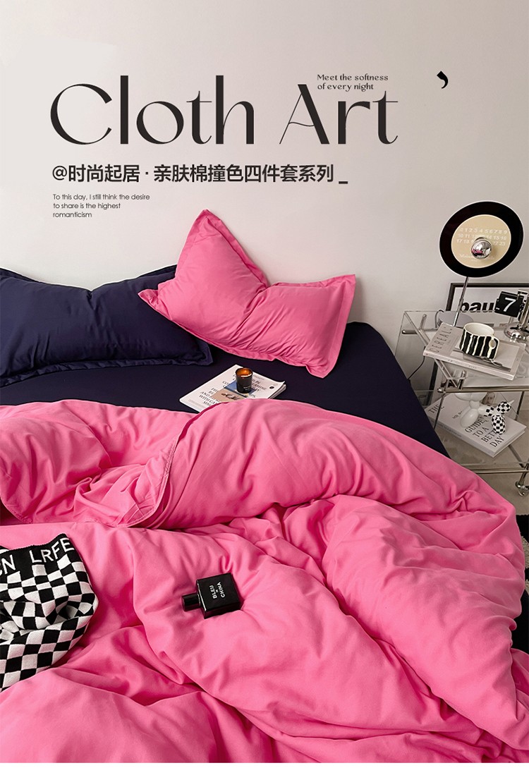 贝拉梦 2023款亲肤棉纯色拼色治 愈系四件套 树莓红+深空蓝