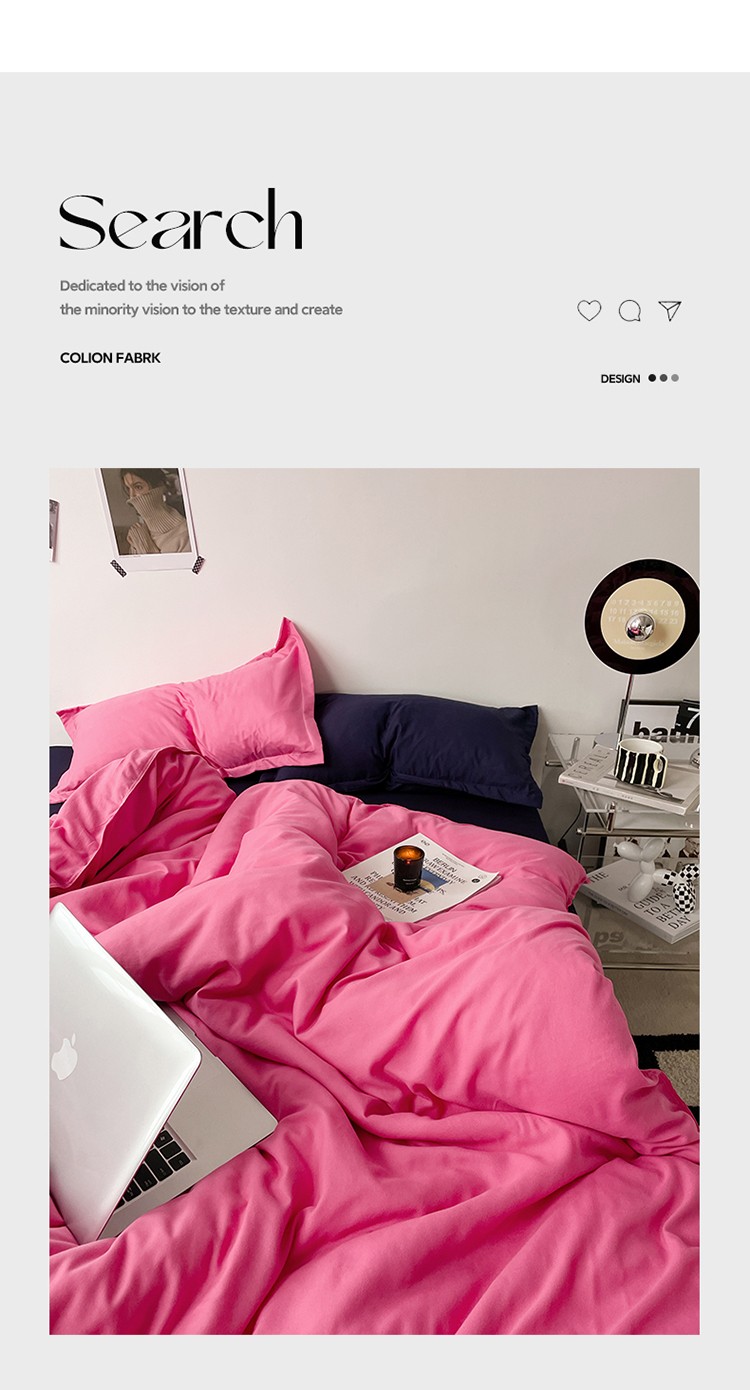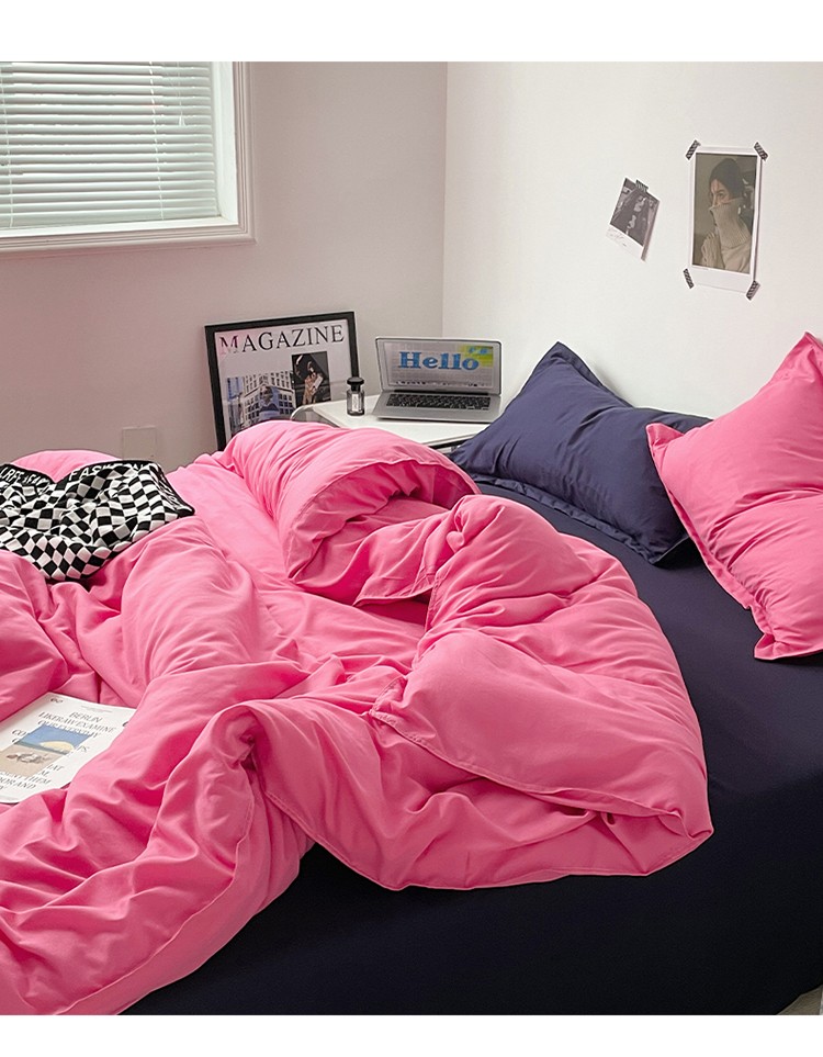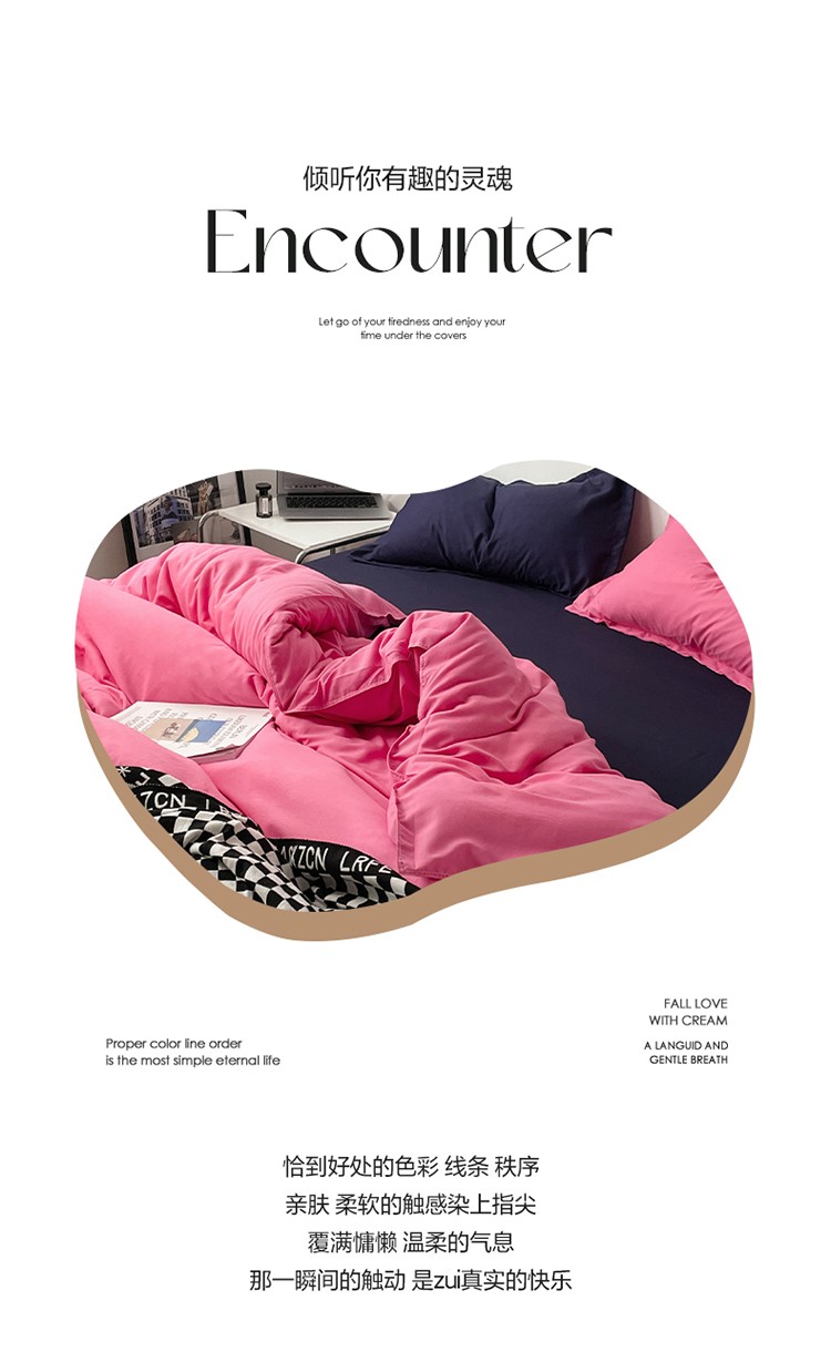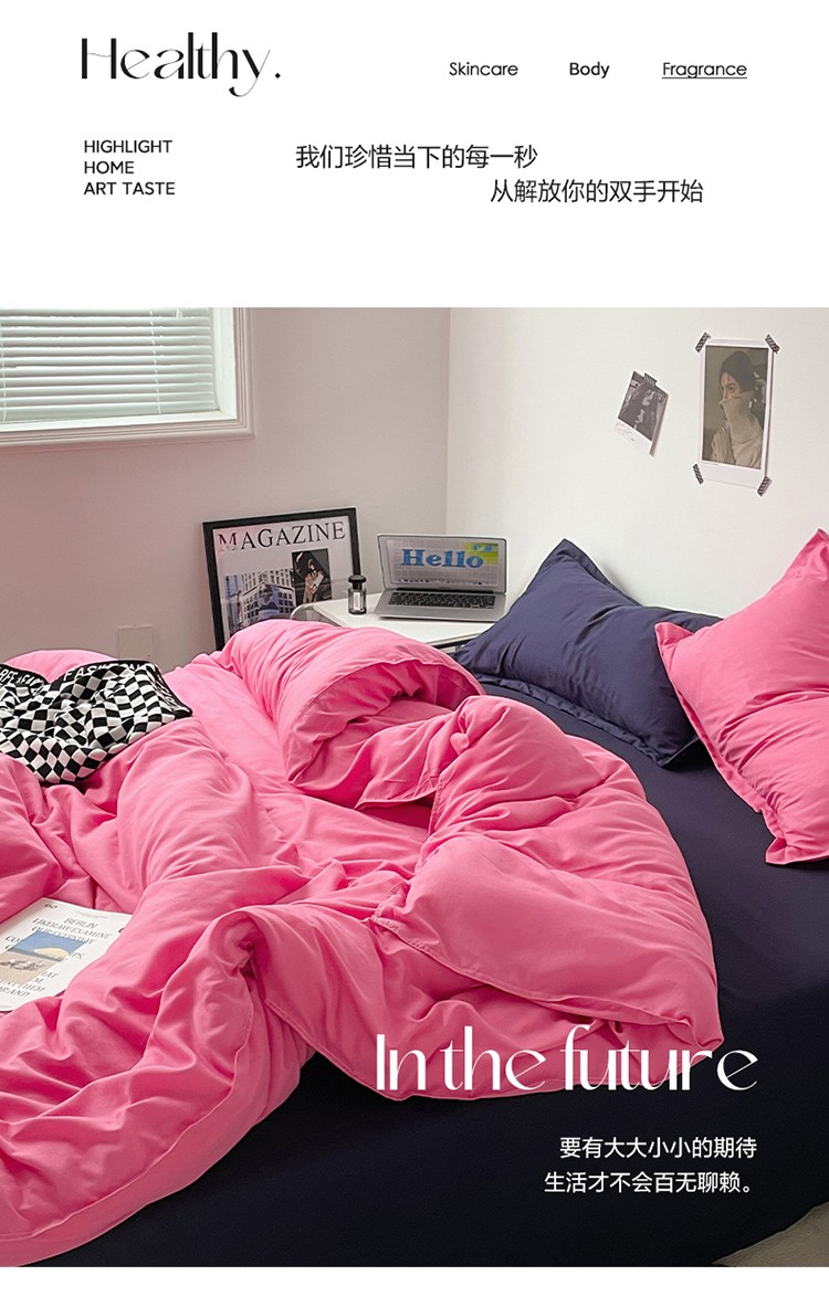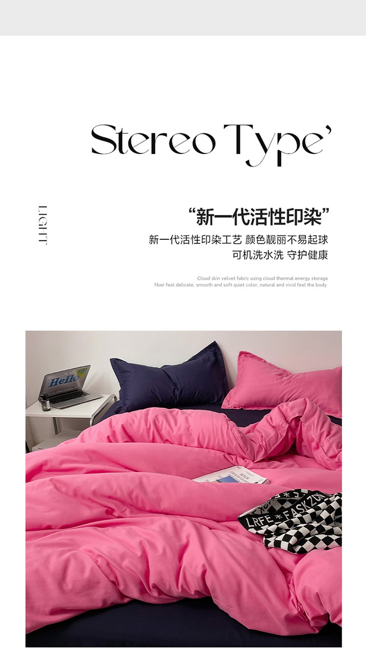 贝拉梦 2023款亲肤棉纯色拼色治 愈系四件套 树莓红+深空蓝