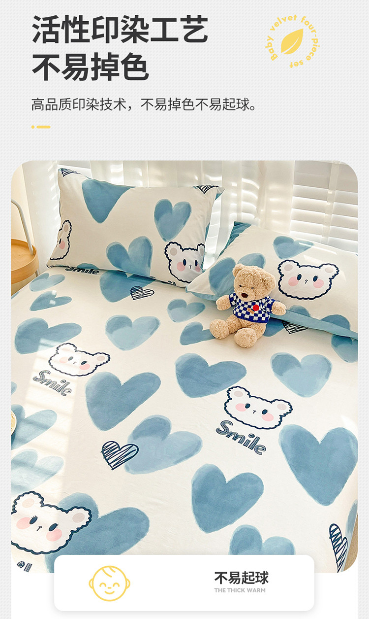 • 91家纺网 家纺一手货源 找家纺 名兮 2023新款全棉印花床笠 波波熊