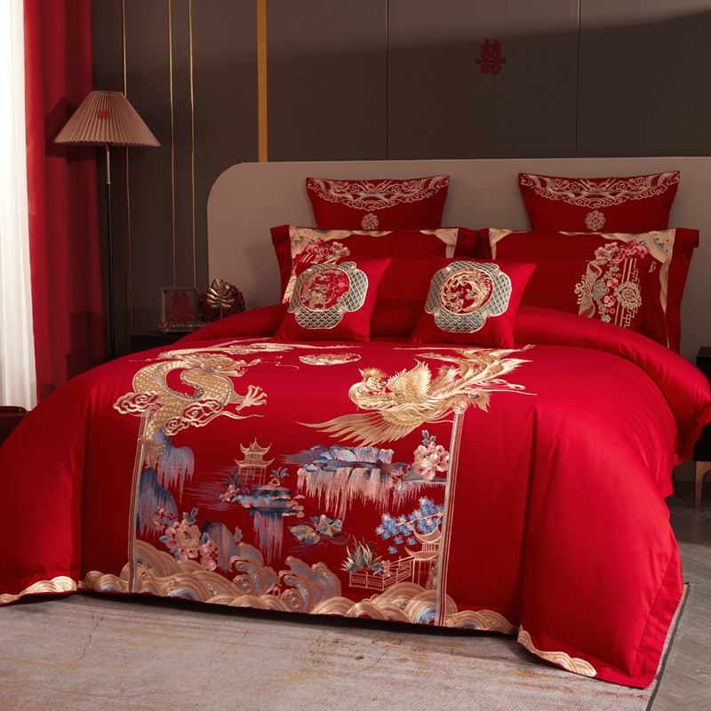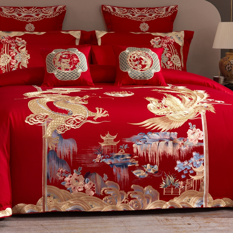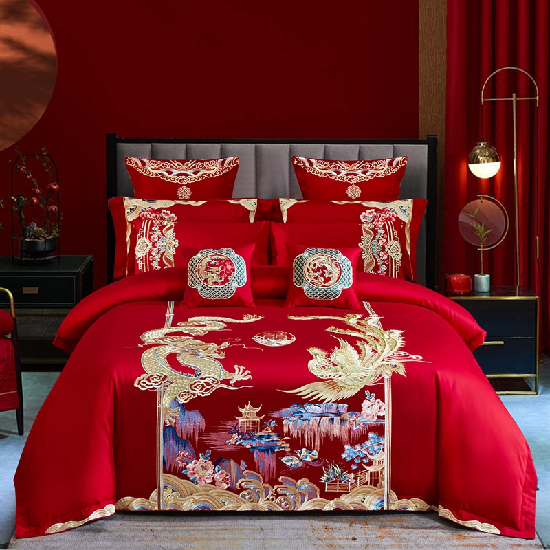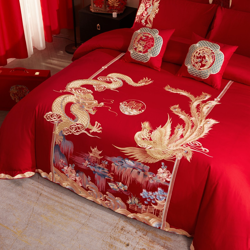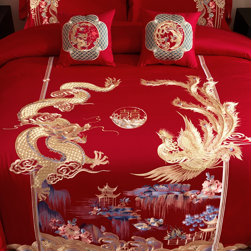 当前位置: 91家纺网 > 商品网购 > 床品套件 > 四件套 > 婚庆四件套 > 用心 2023新款长绒棉刺绣婚庆四件套多件套 皇室龙凤