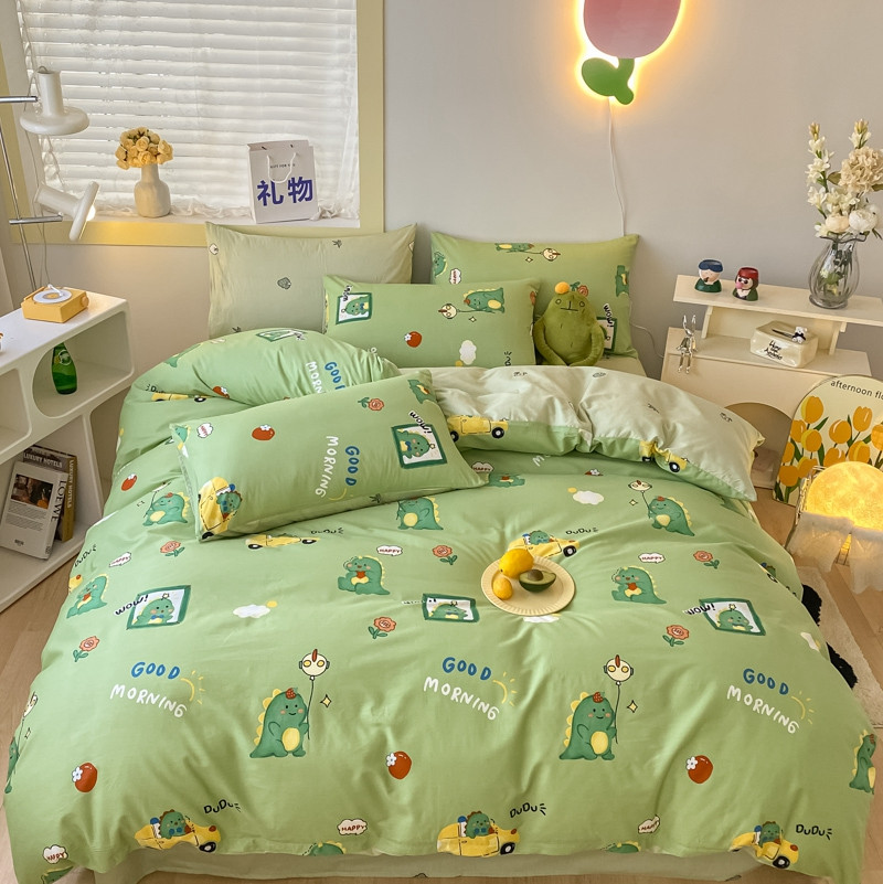 商品名称:金丝鸟家纺 2023新款舒适柔软双版全棉斜纹四季可用四件套 汽车恐龙园