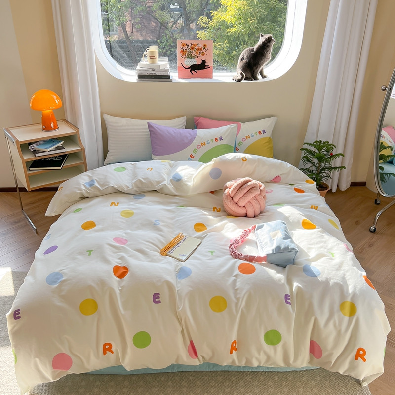 (总)柚子YOUTH 225新款全棉双层纱球球款四件套,薄荷绿条,波点霉霉,波点小丑,蓝心,芊芊结,碎花点点