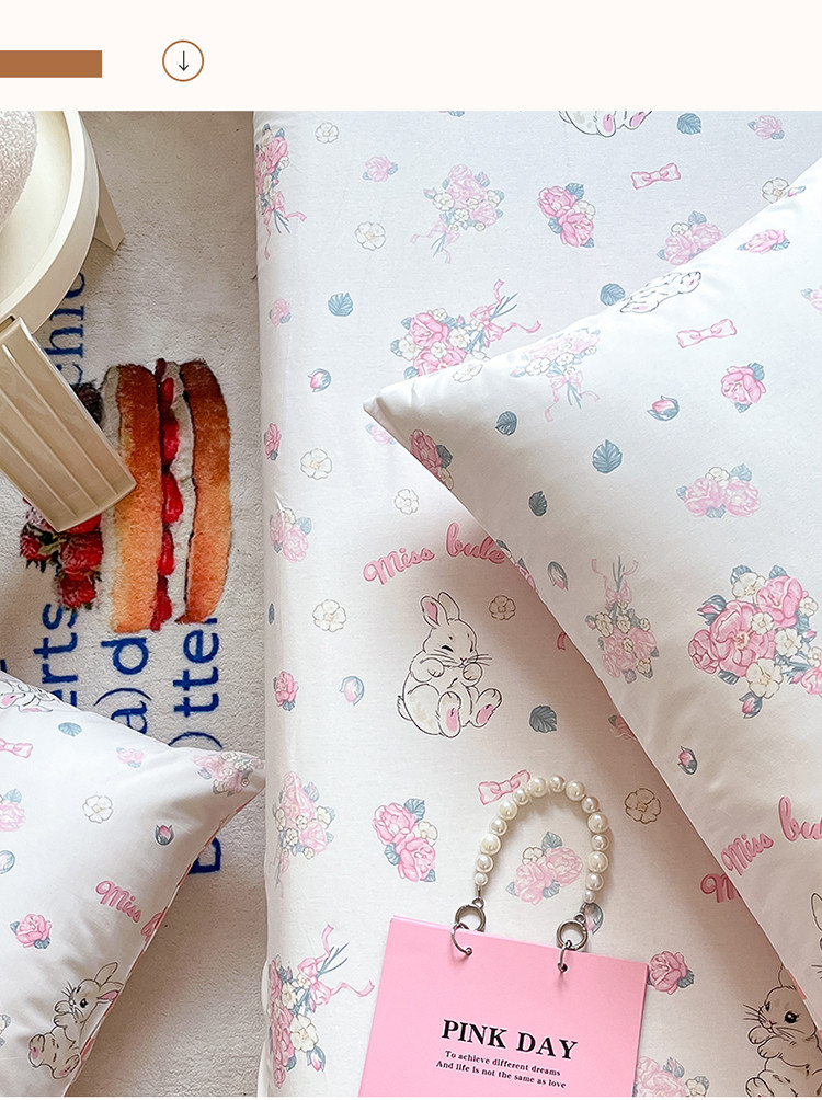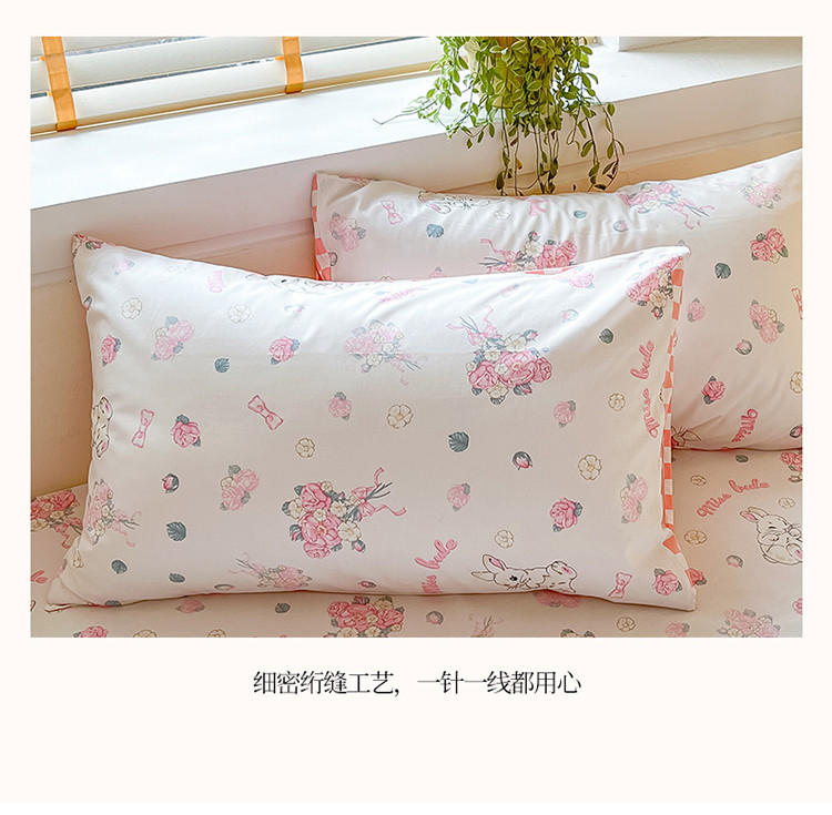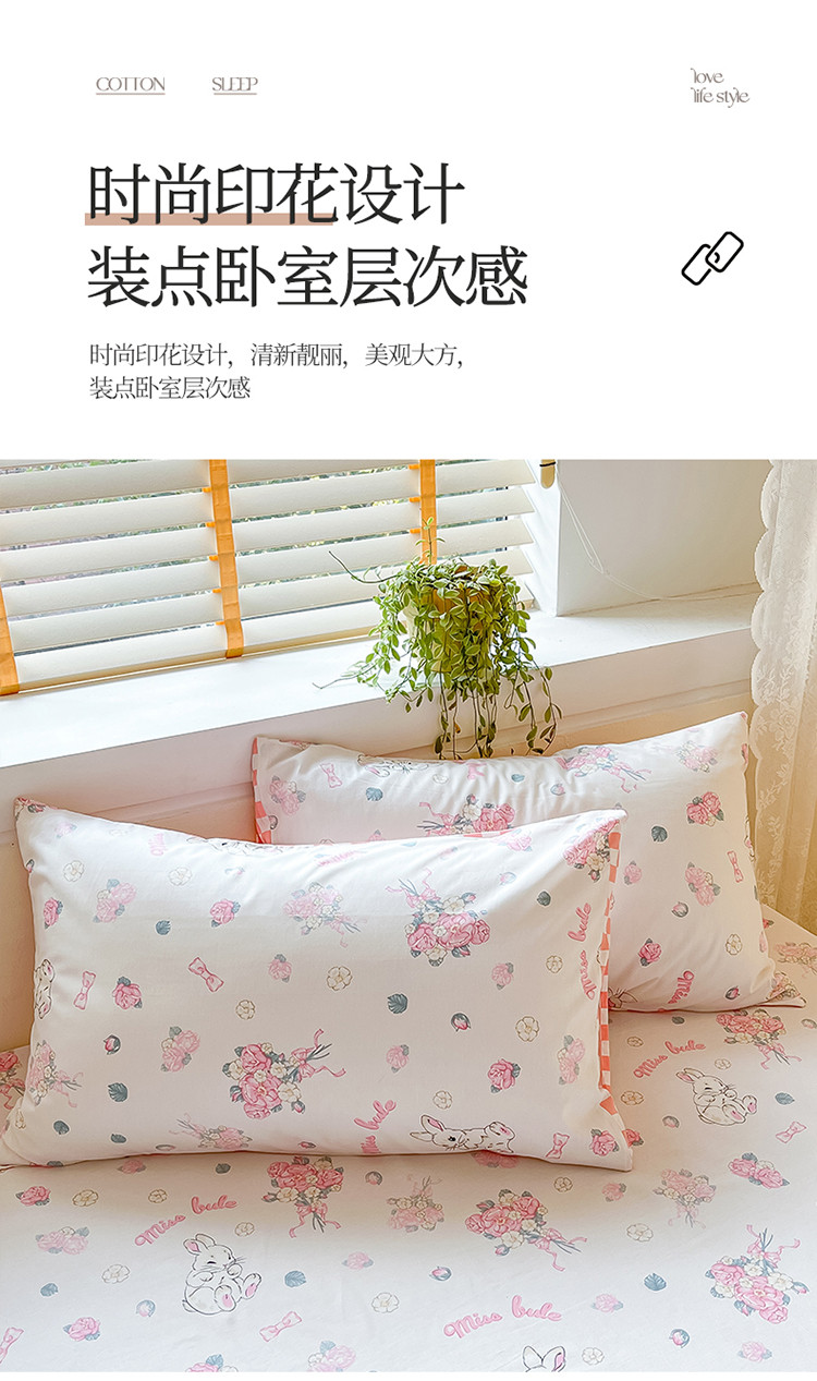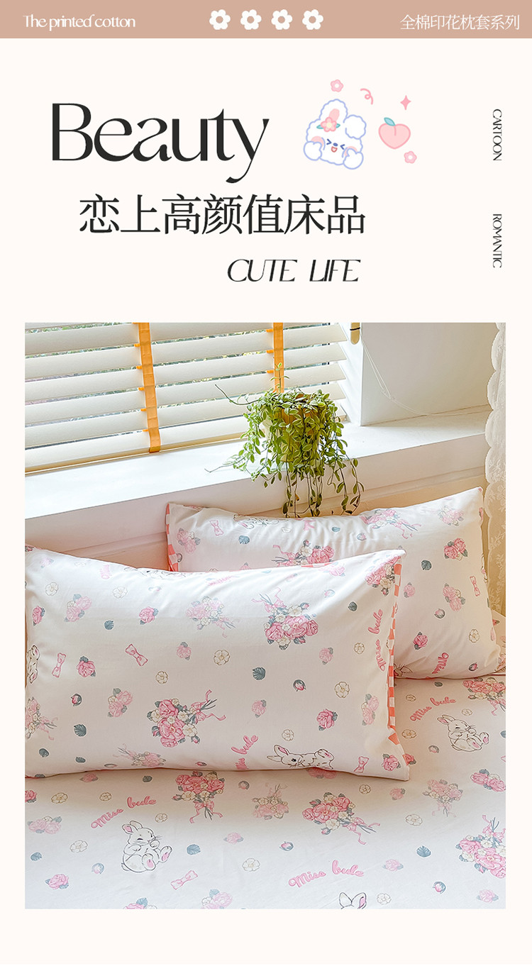 商品名称:2023新款全棉印花小清新系列-单枕套 花束小兔