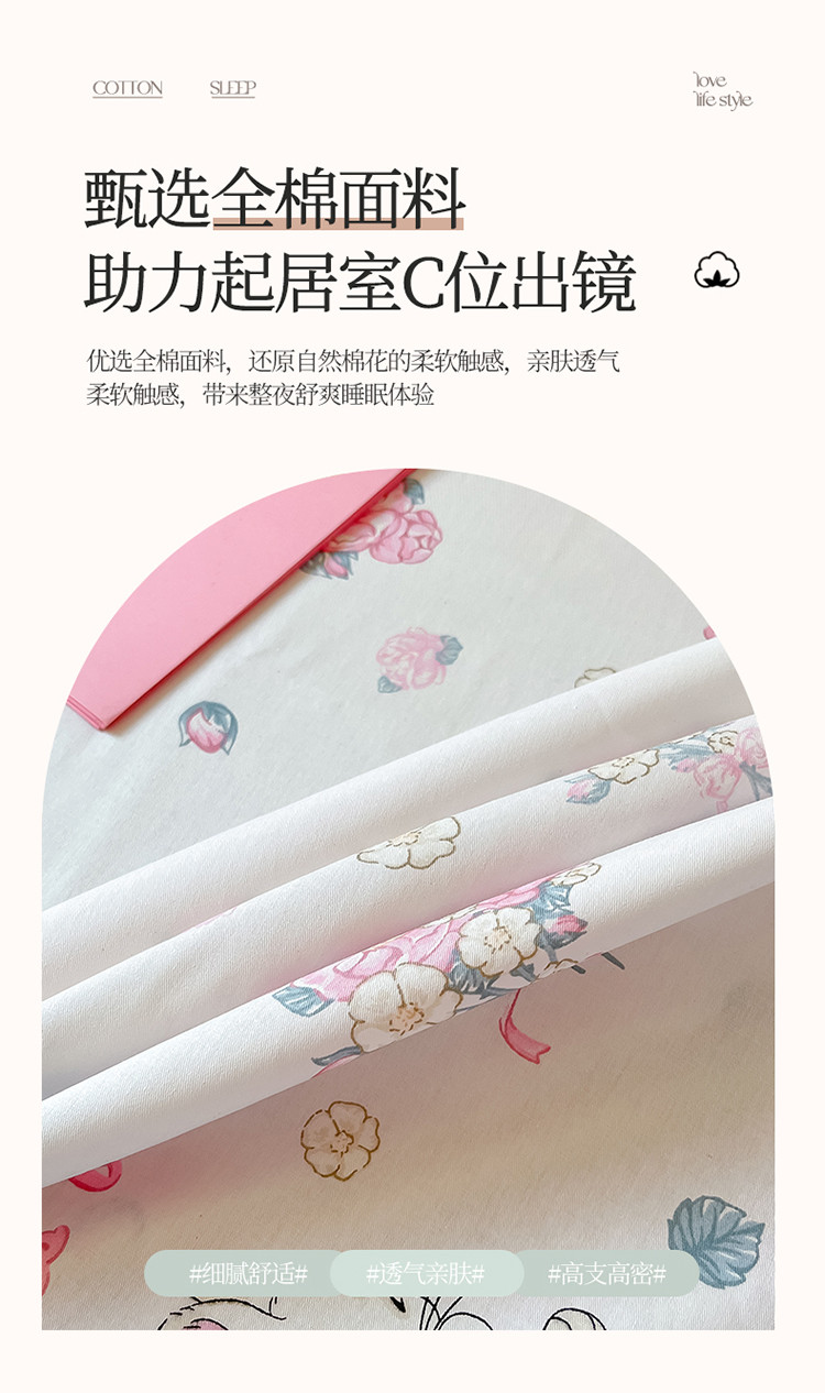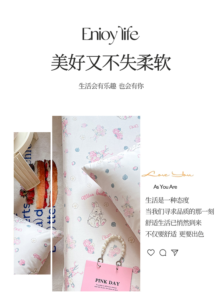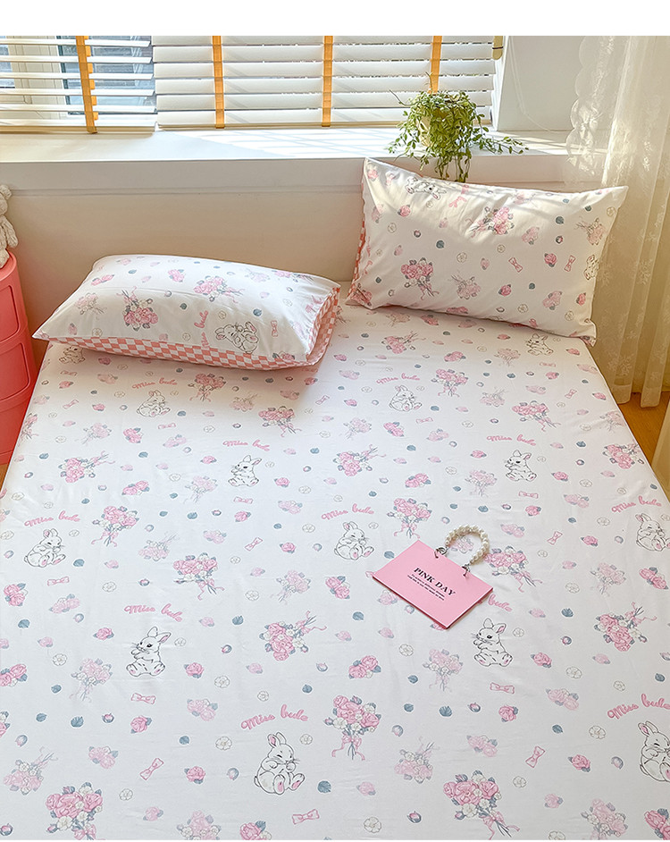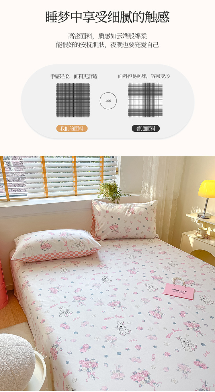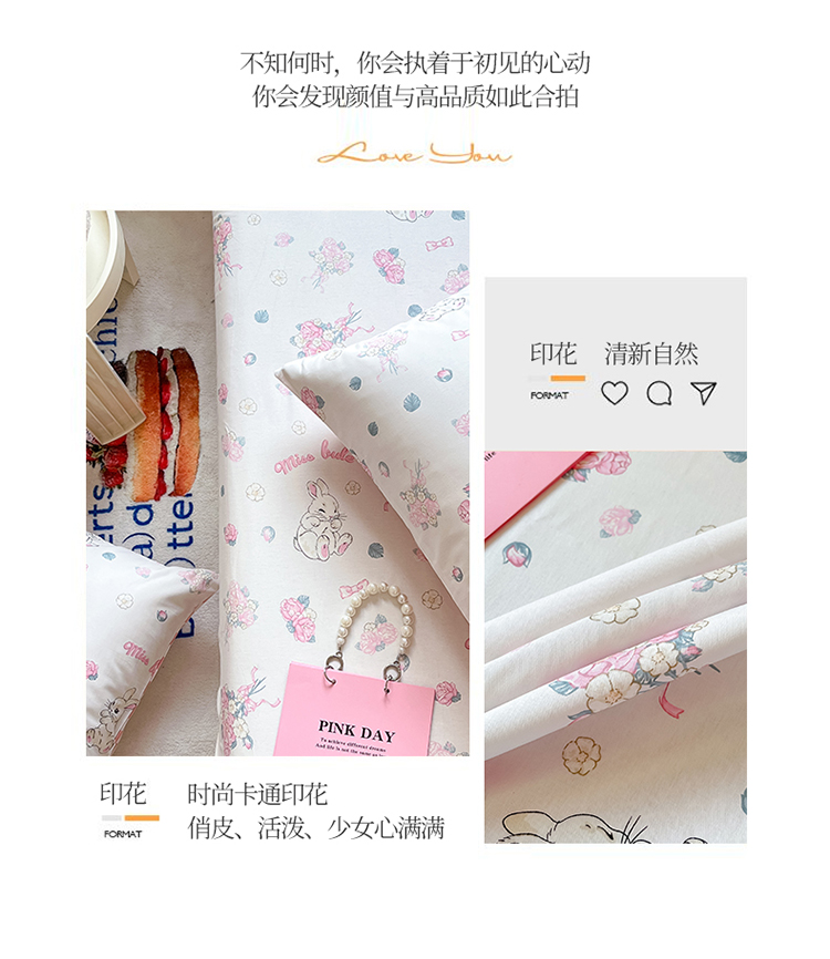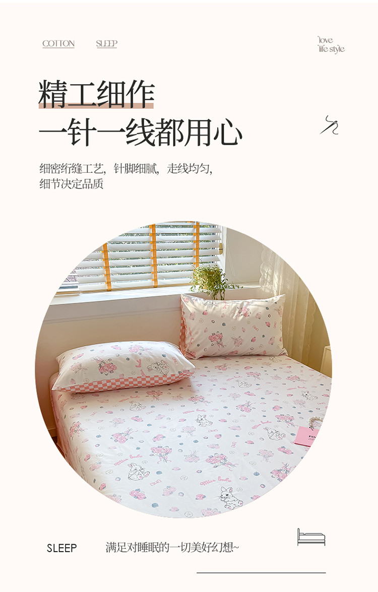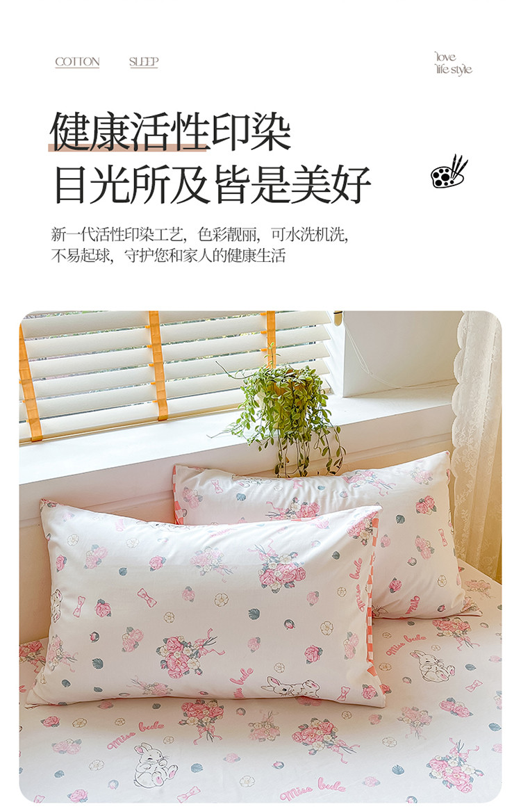 (总)蓝邻家纺 2024新款小清新印花全棉四件套学生宿舍三件套,茶园兔,风翩,机灵兔熊,可妮露,藤蔓兔,筱薇